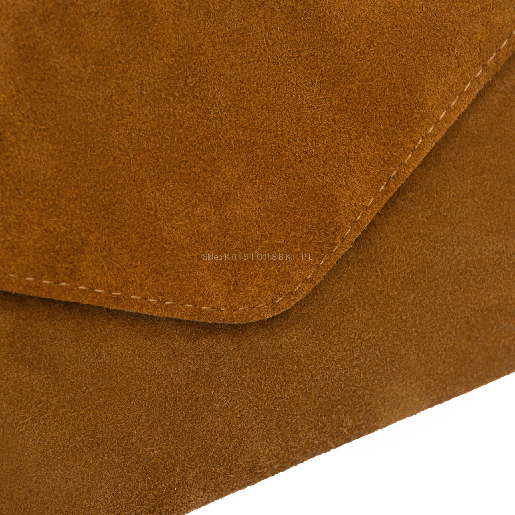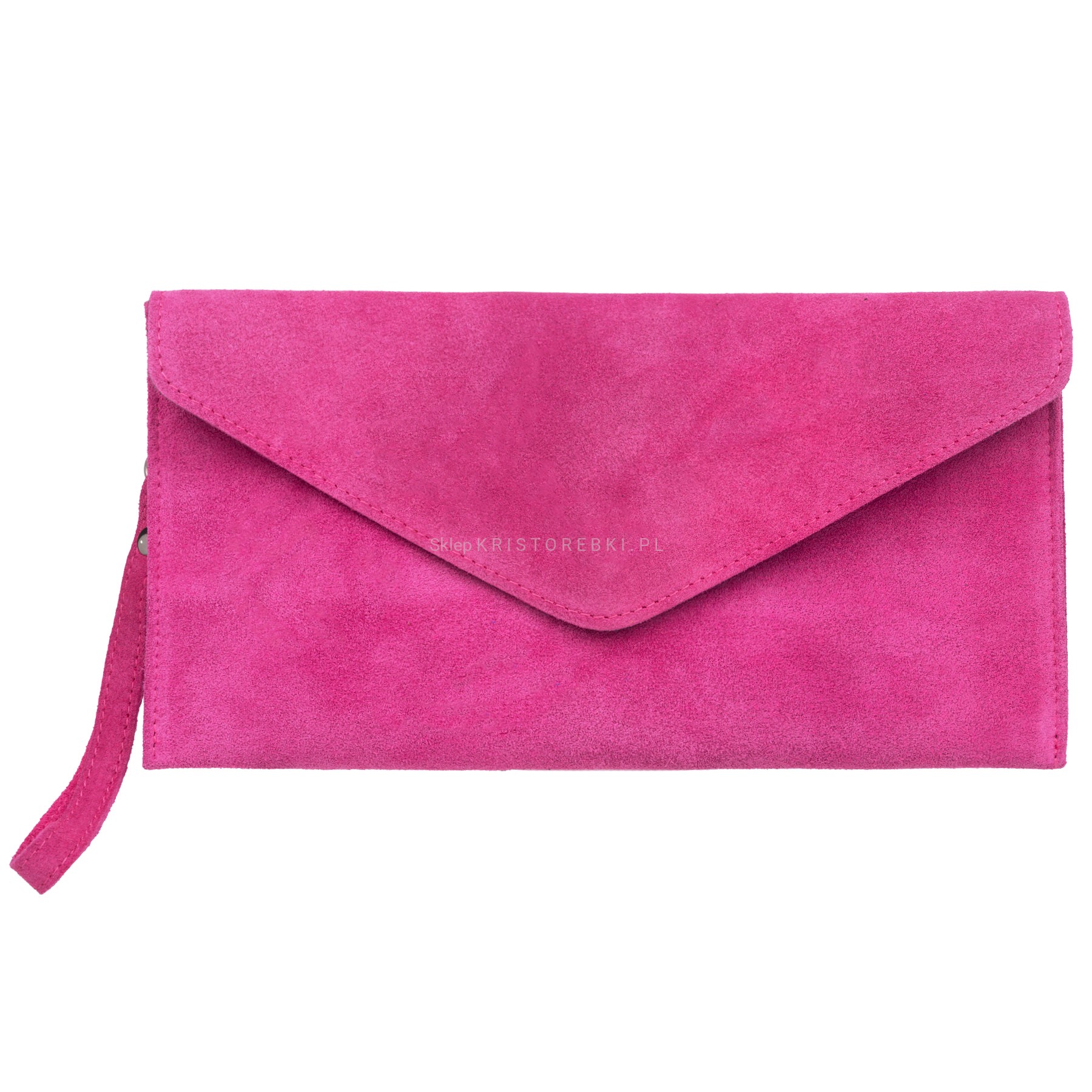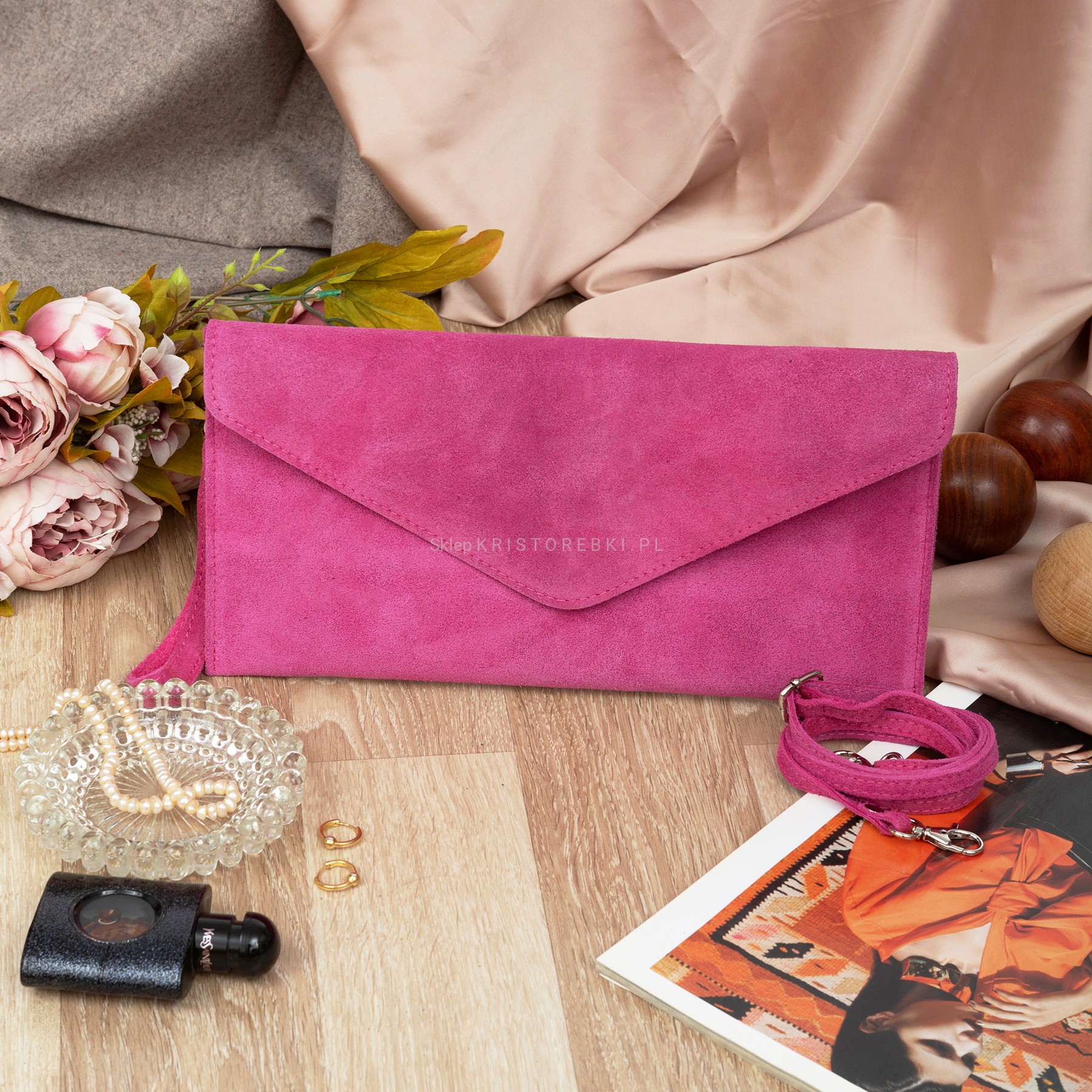 VERA PELLE torebka damska zamszowa kopertówka listonoszka z paskiem na ramię V646 fuksja
