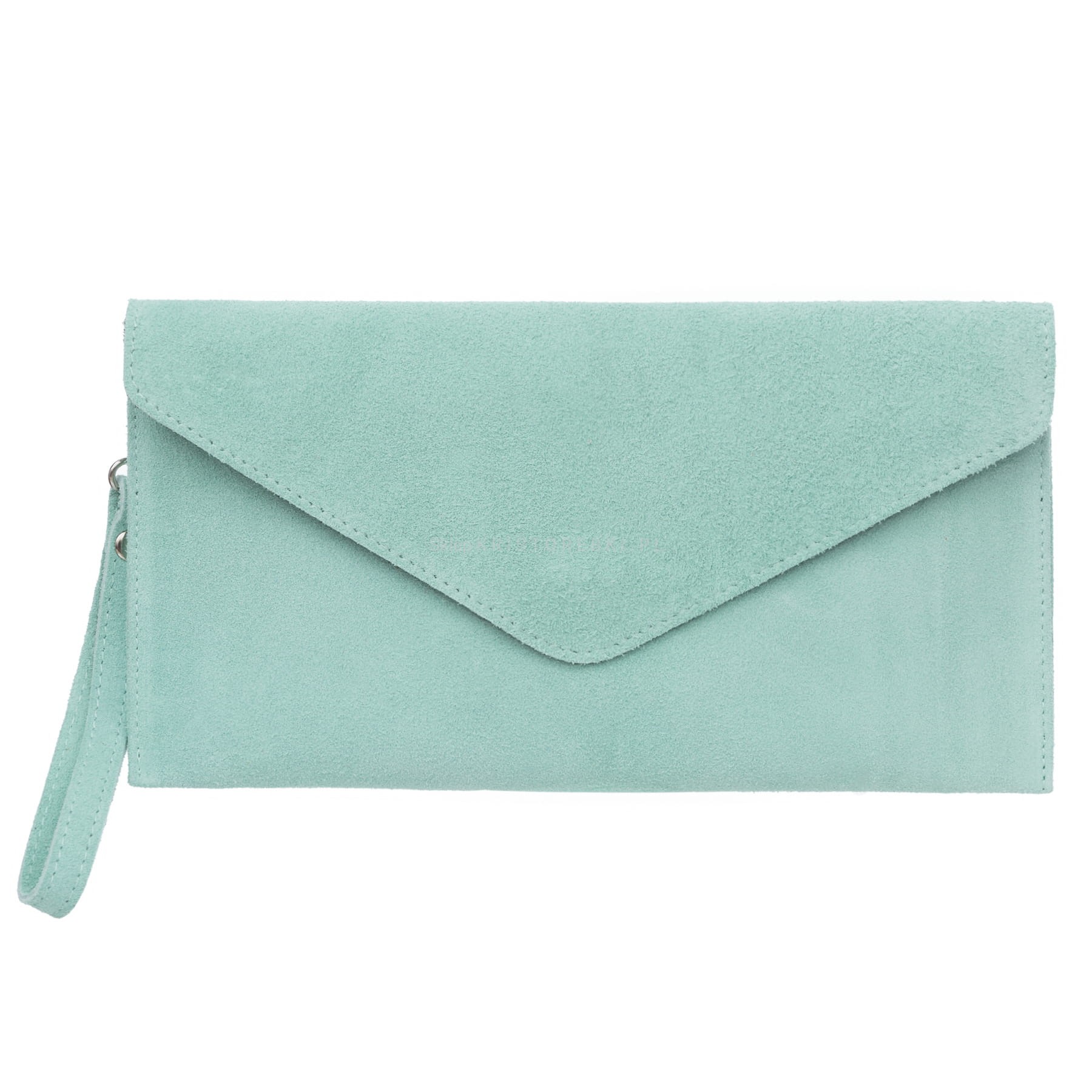 VERA PELLE torebka damska zamszowa kopertówka listonoszka z paskiem na ramię V646 jasna zielona