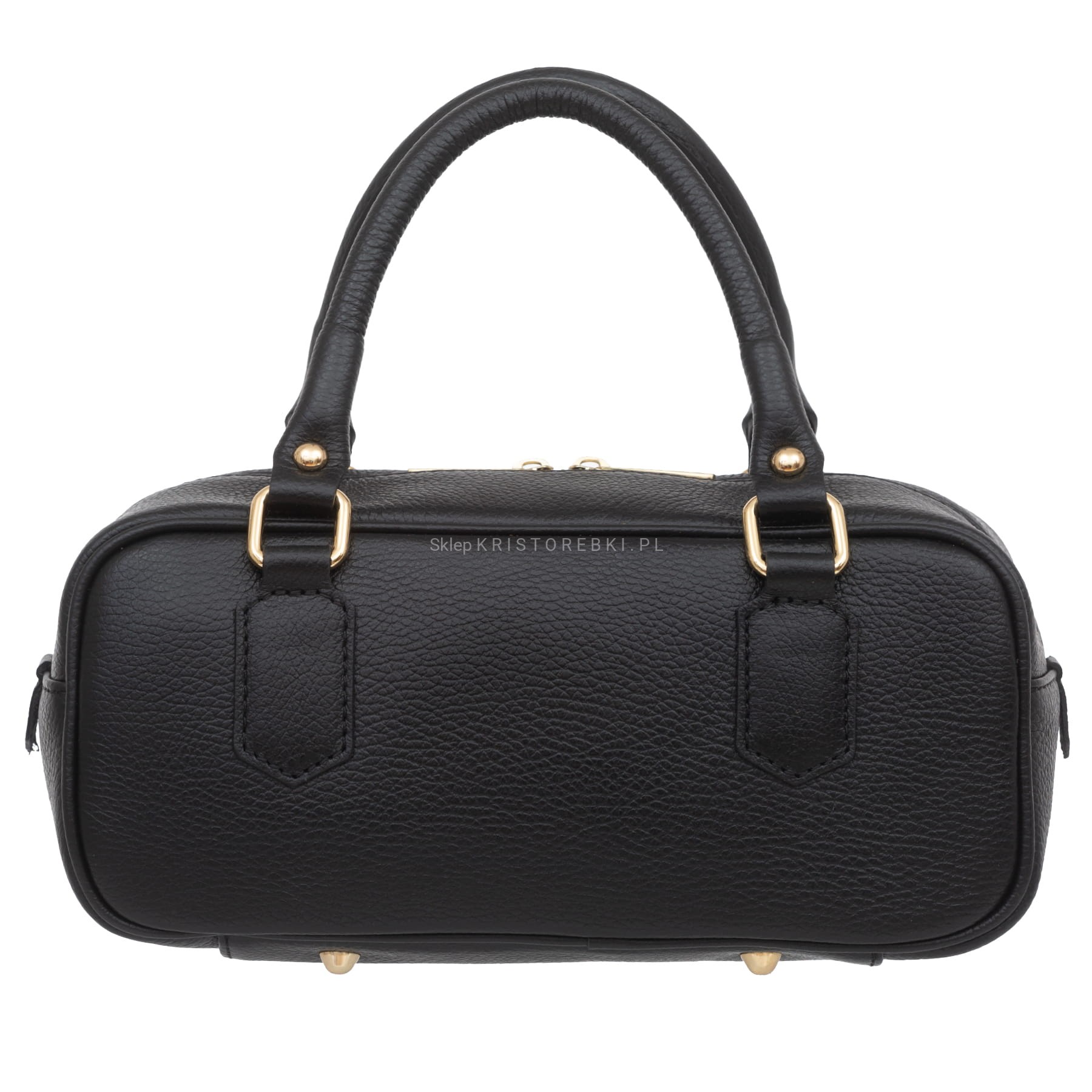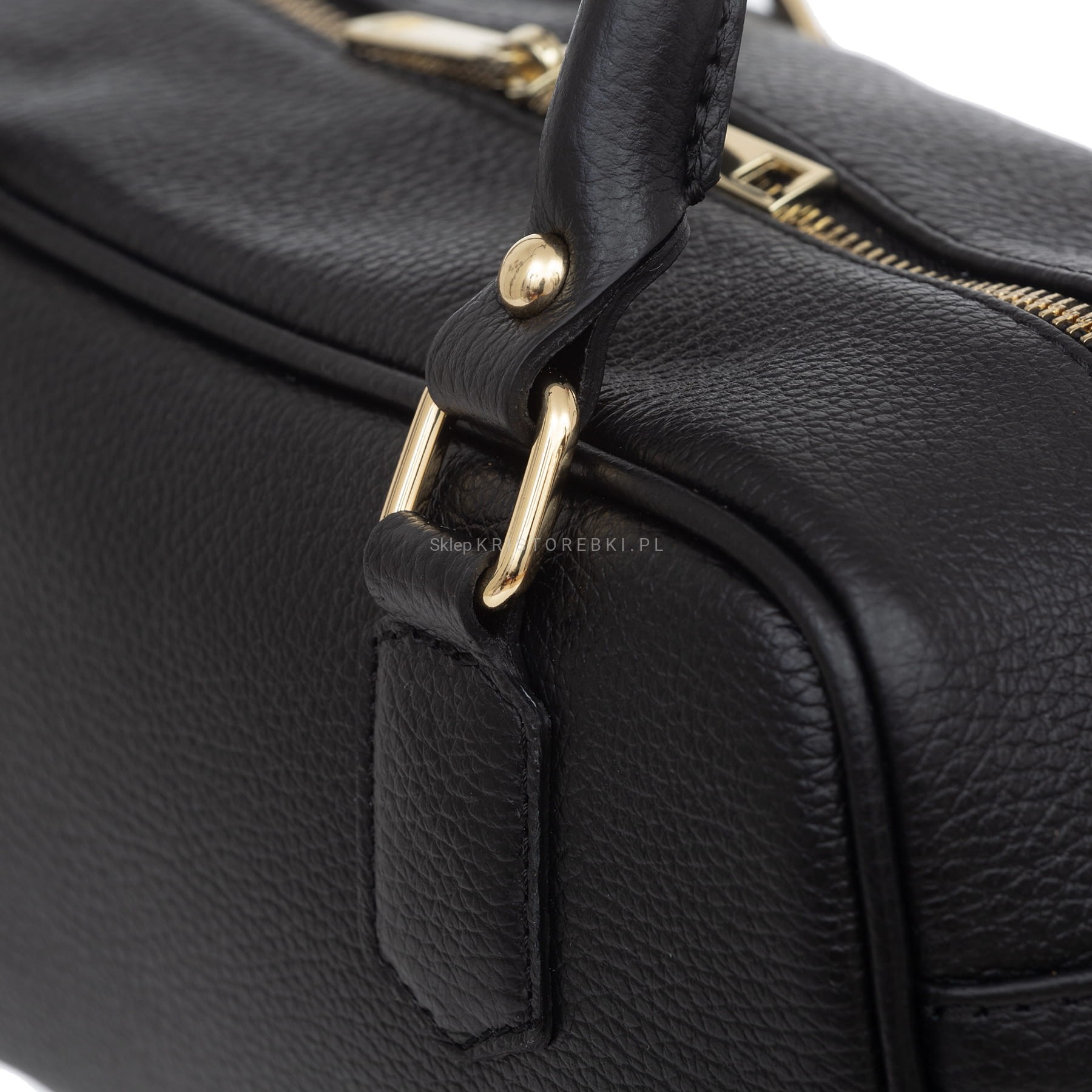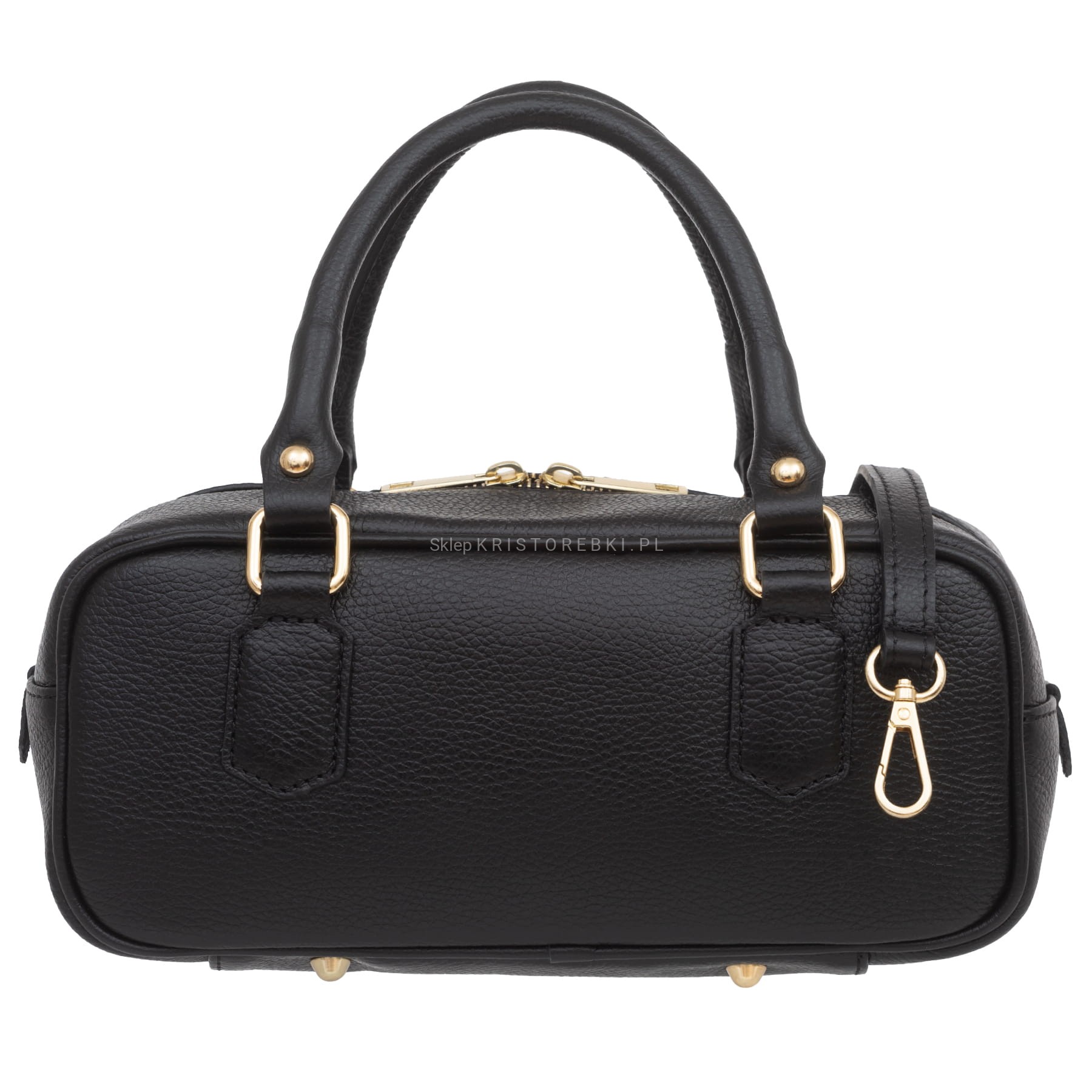 VERA PELLE torebka damska skórzana kuferek z paskiem na ramię V669 czarna