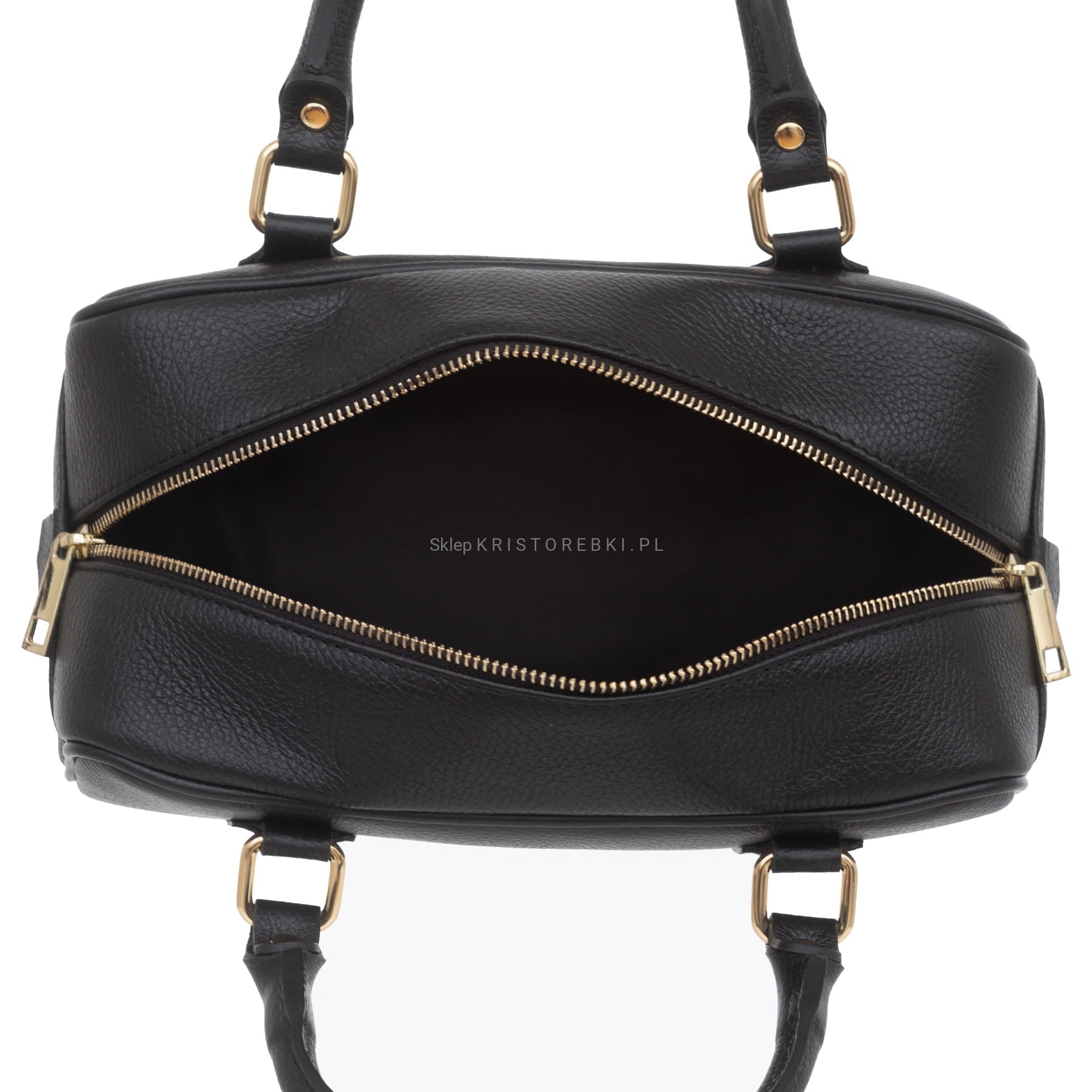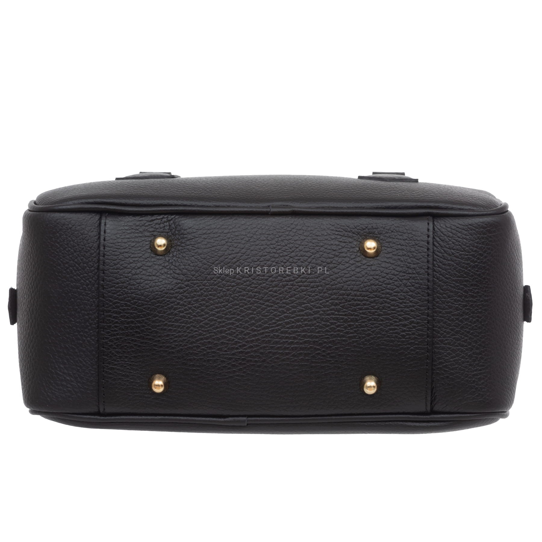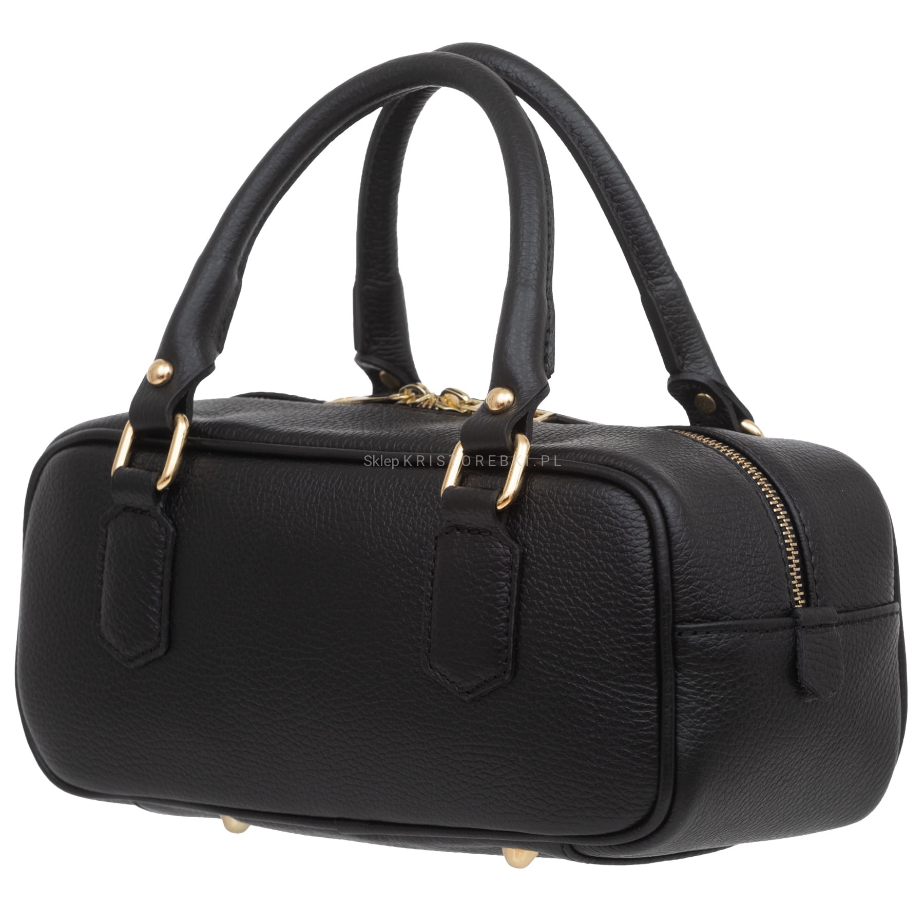 Torebka damska znanej i cenionej na rynku europejskim marki VERA PELLE ITALY w kolorze CZARNYM. Wykonana została bardzo starannie z najwyższej jakości skóry naturalnej z widoczną fakturą. Torebka posiada wygodne rączki do noszenia w ręku oraz długi, odpinany i regulowany pasek, dzięki czemu można ją wygodnie nosić również na ramieniu i bez trudu dopasować do własnych preferencji. Torebka posiada złote okucia i zamykana jest na suwak a jednokomorowy środek wykończony został estetyczną podszewką. Spód torebki chronią nóżki ochronne. Torebka ta będzie świetnym dodatkiem do codziennych i wizytowych stylizacji.