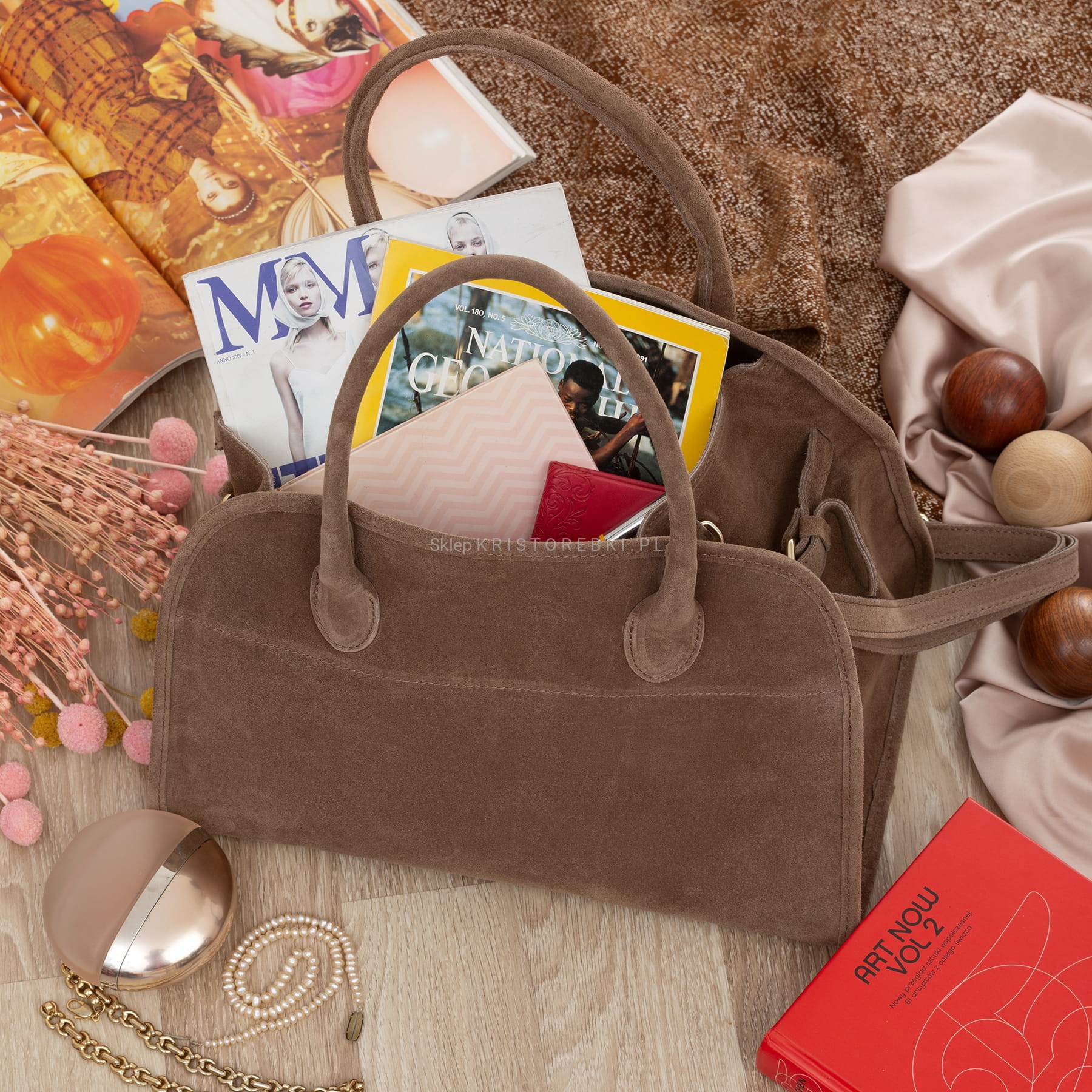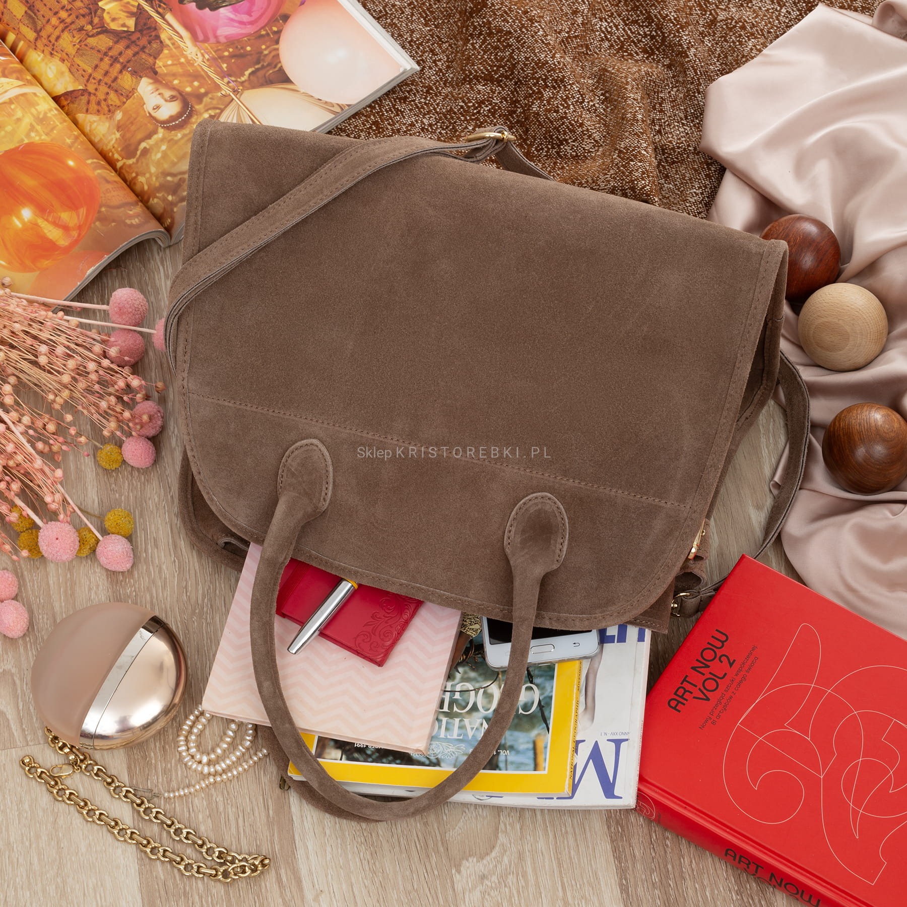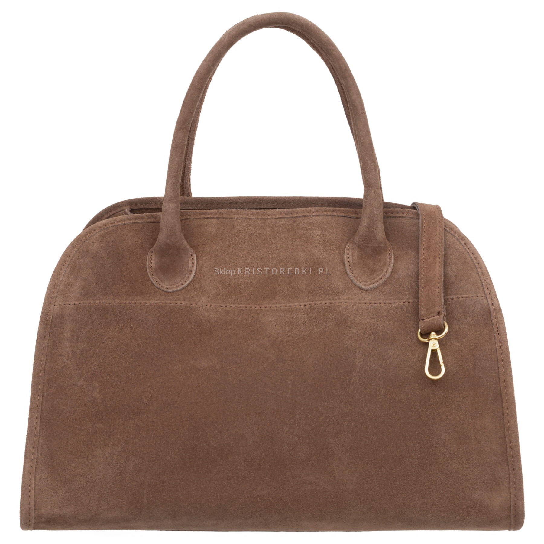VERA PELLE torebka damska zamszowa klasyczna duża z paskiem na ramię V675 taupe
