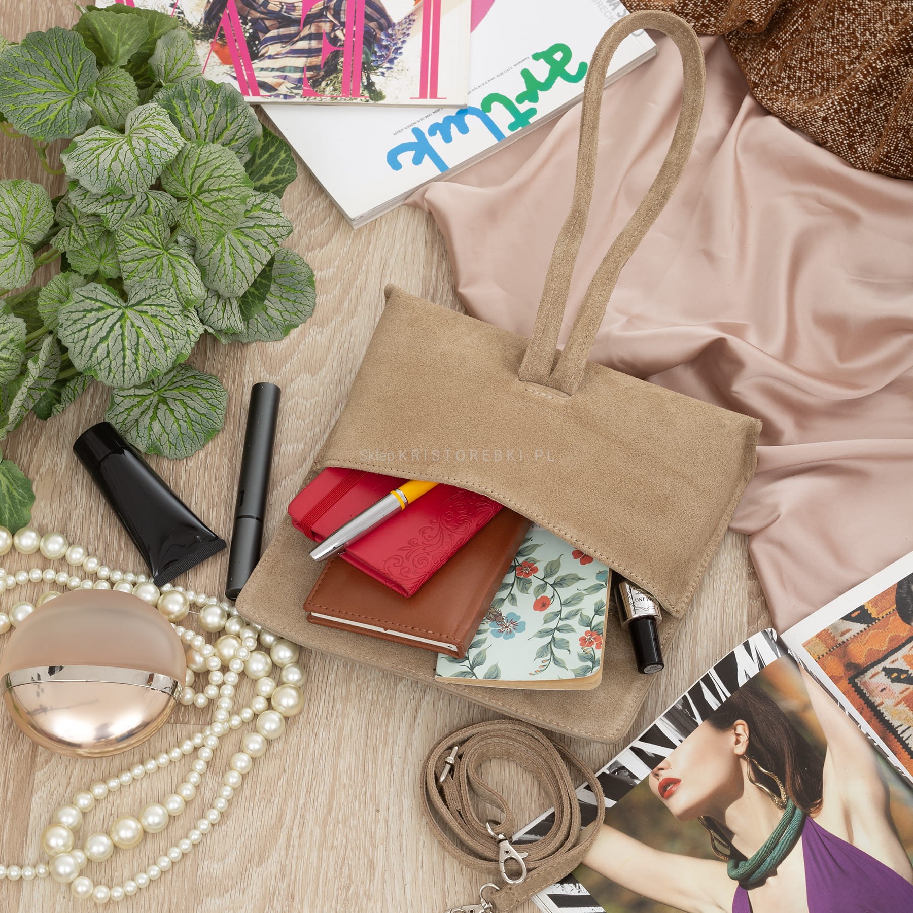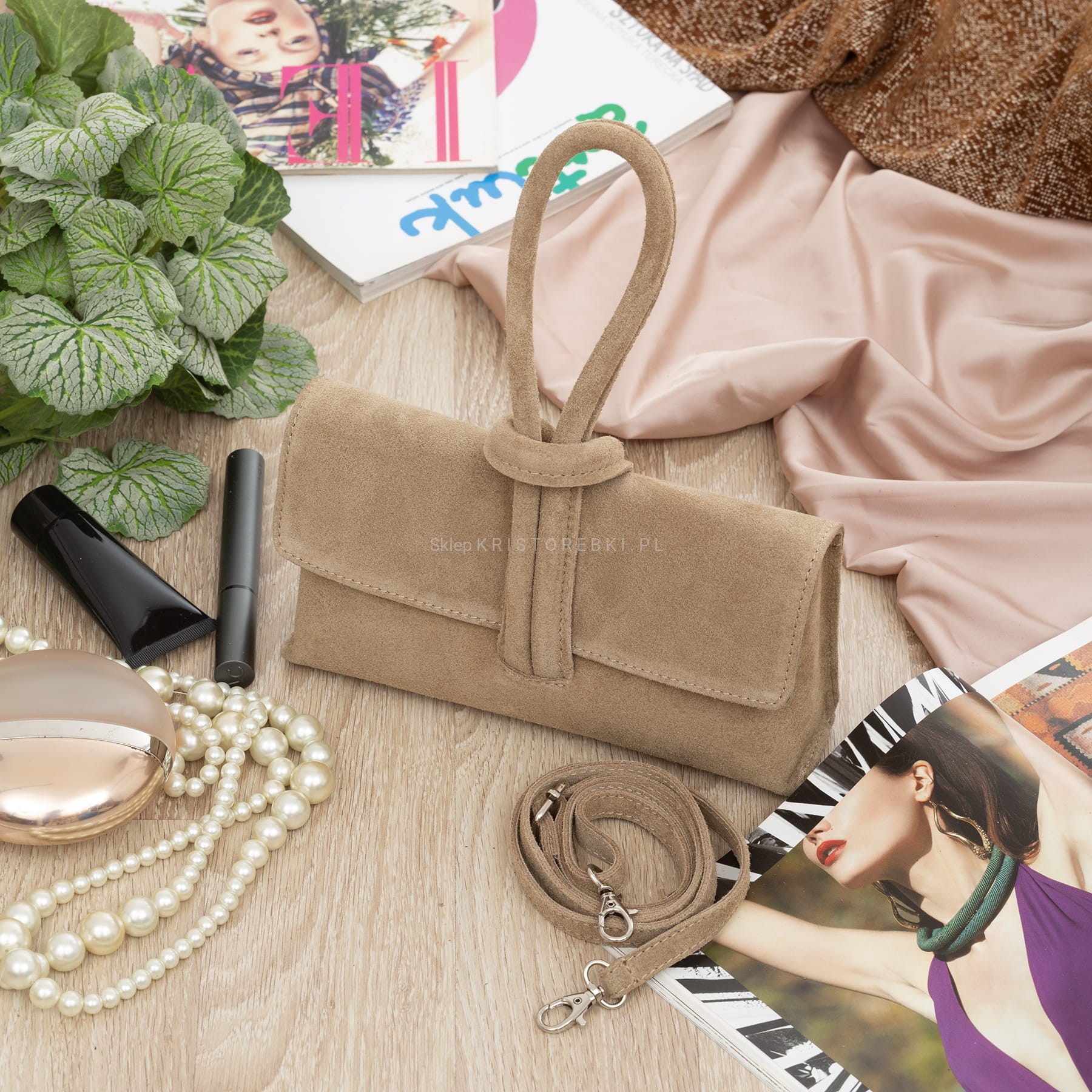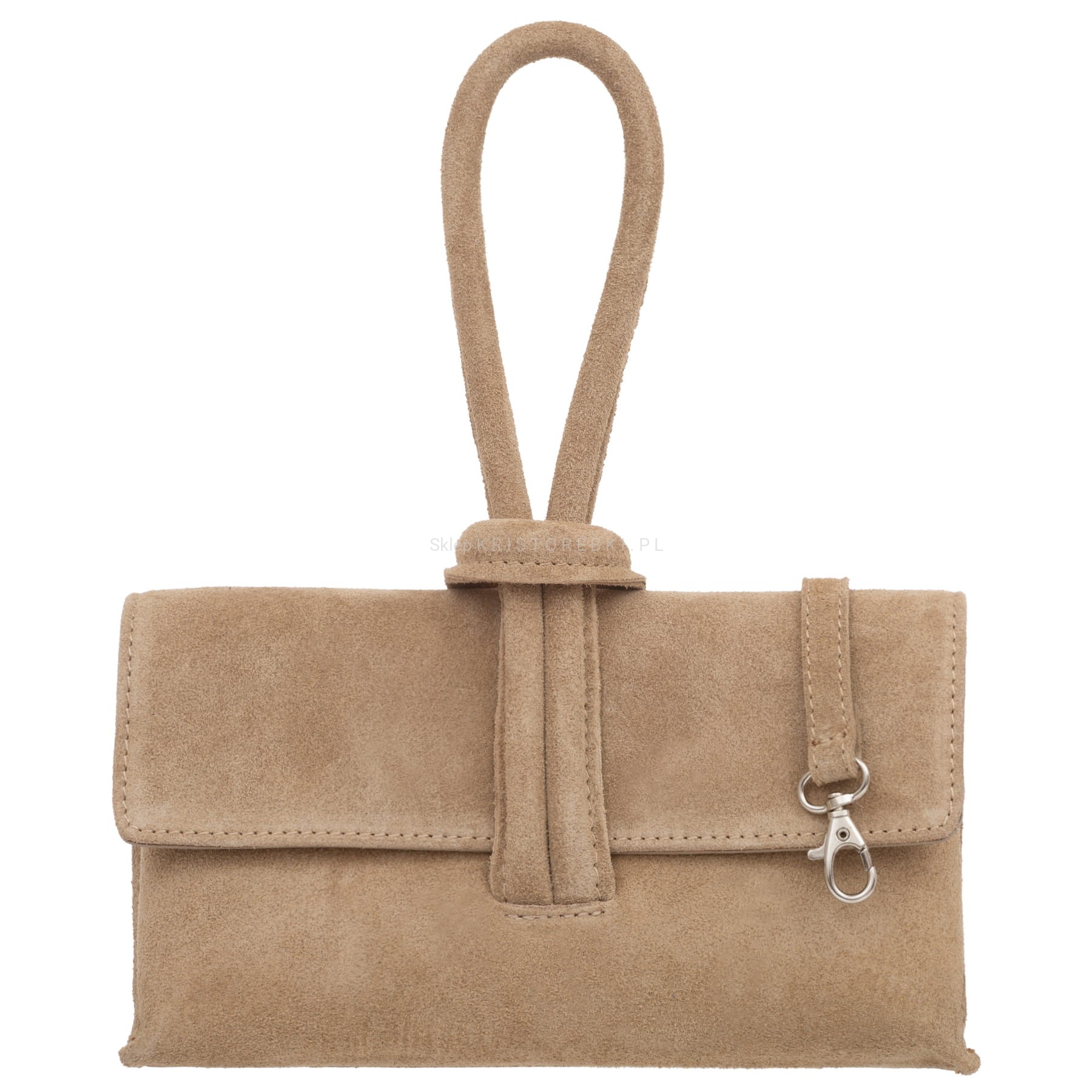 VERA PELLE torebka damska zamszowa listonoszka z paskiem na ramię V678 beżowa