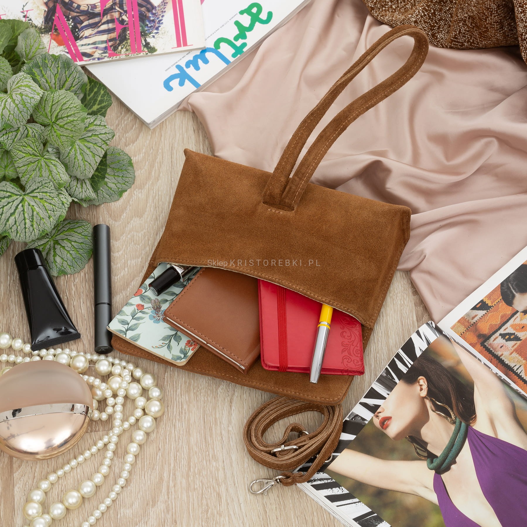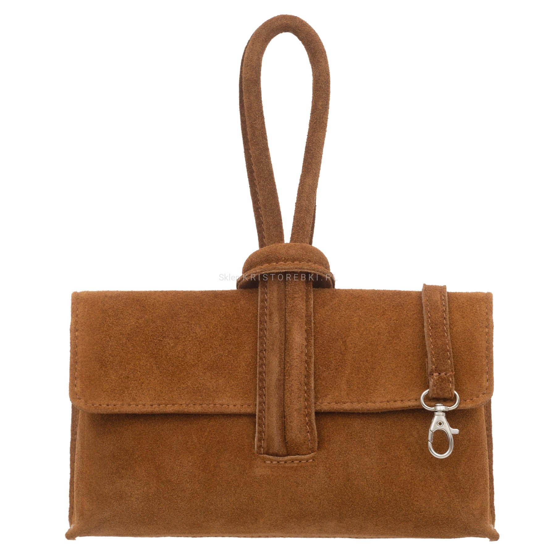 VERA PELLE torebka damska zamszowa listonoszka z paskiem na ramię V678 camel