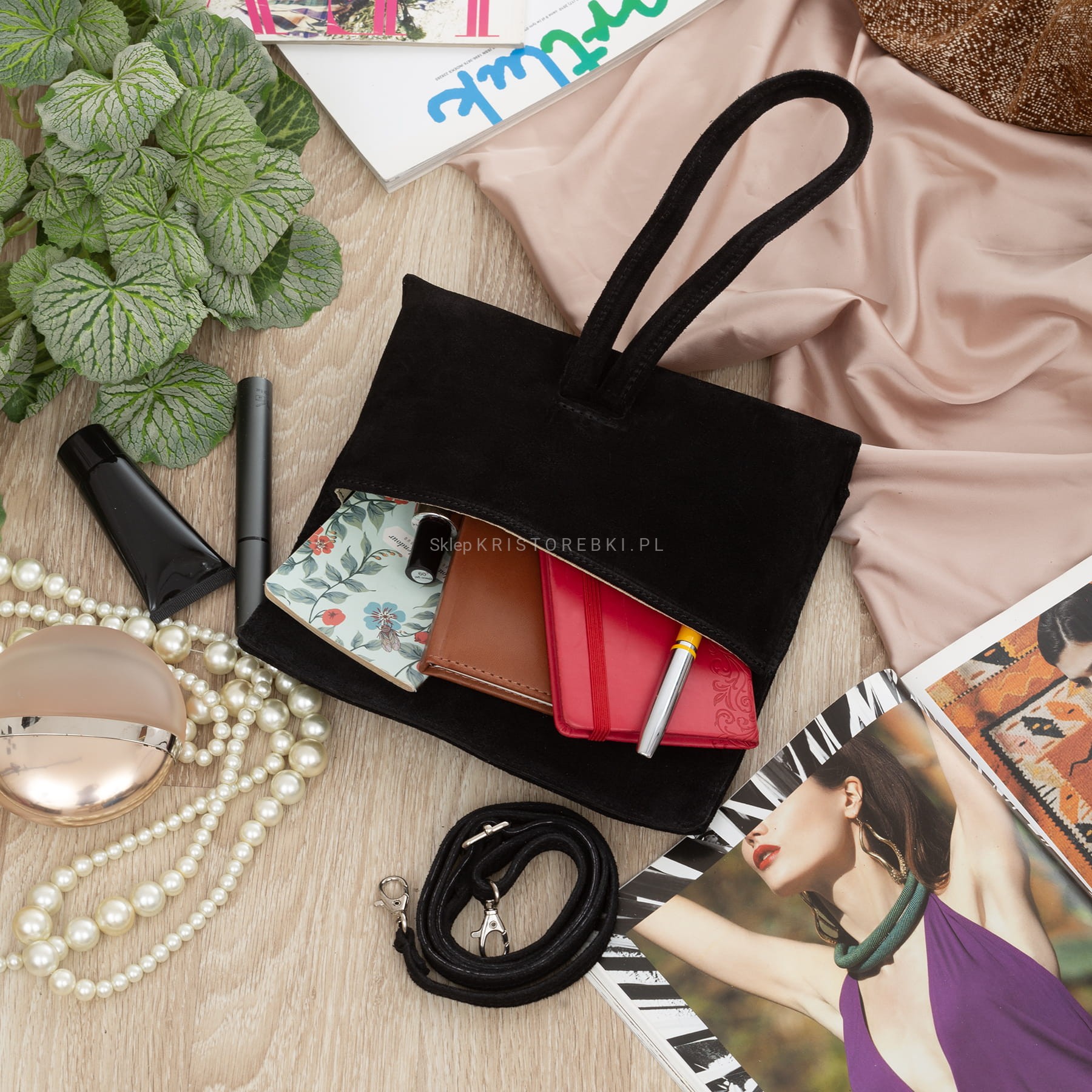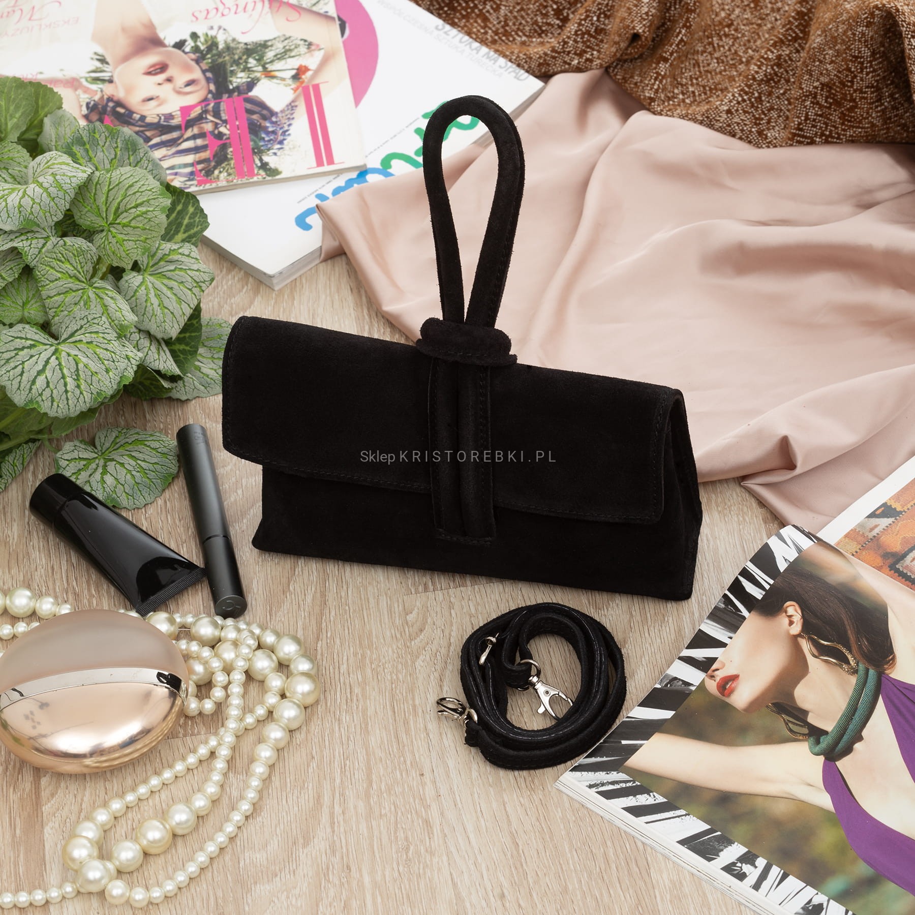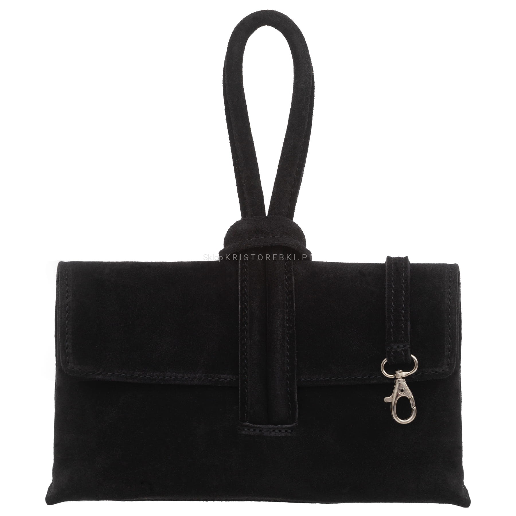 VERA PELLE torebka damska zamszowa listonoszka z paskiem na ramię V678 czarna