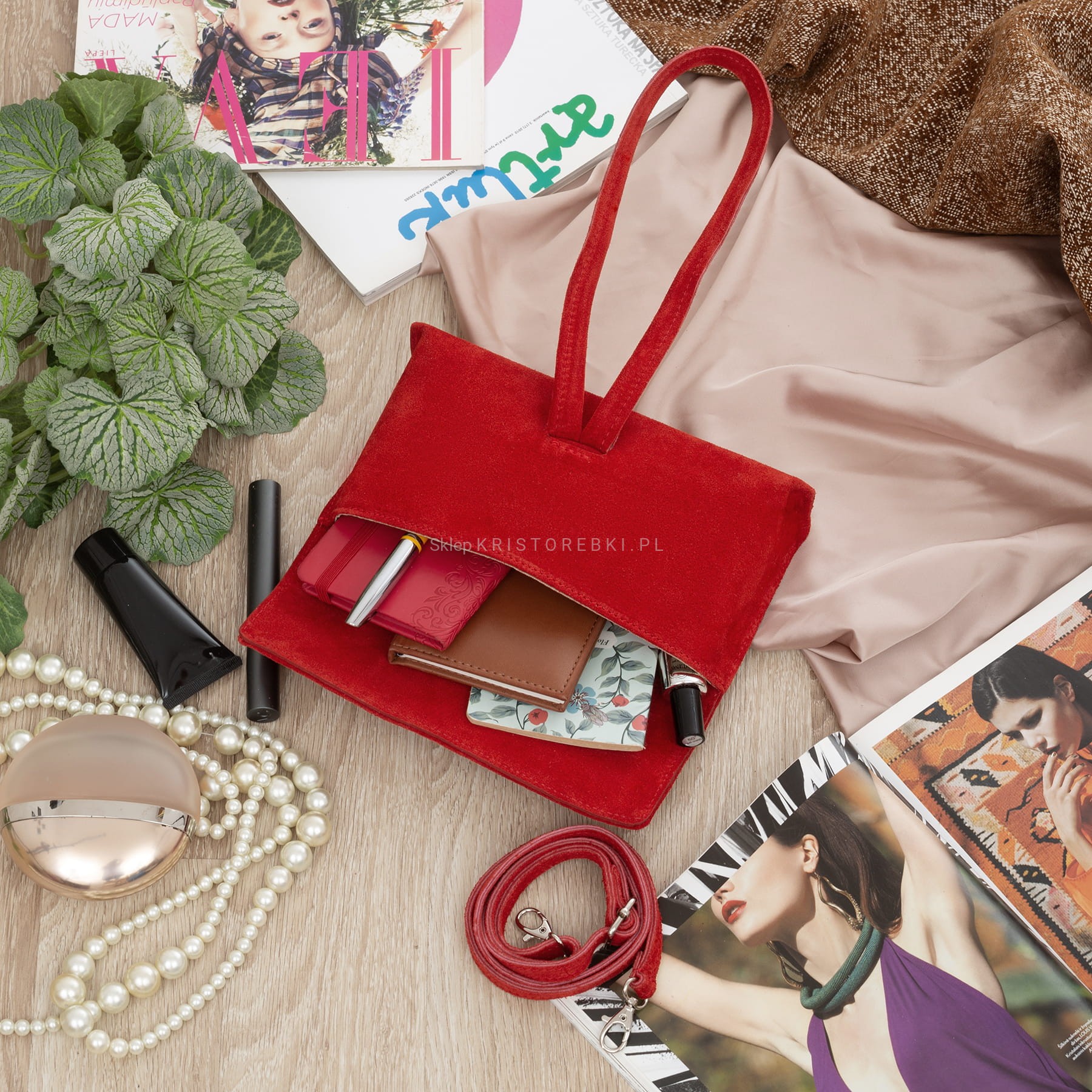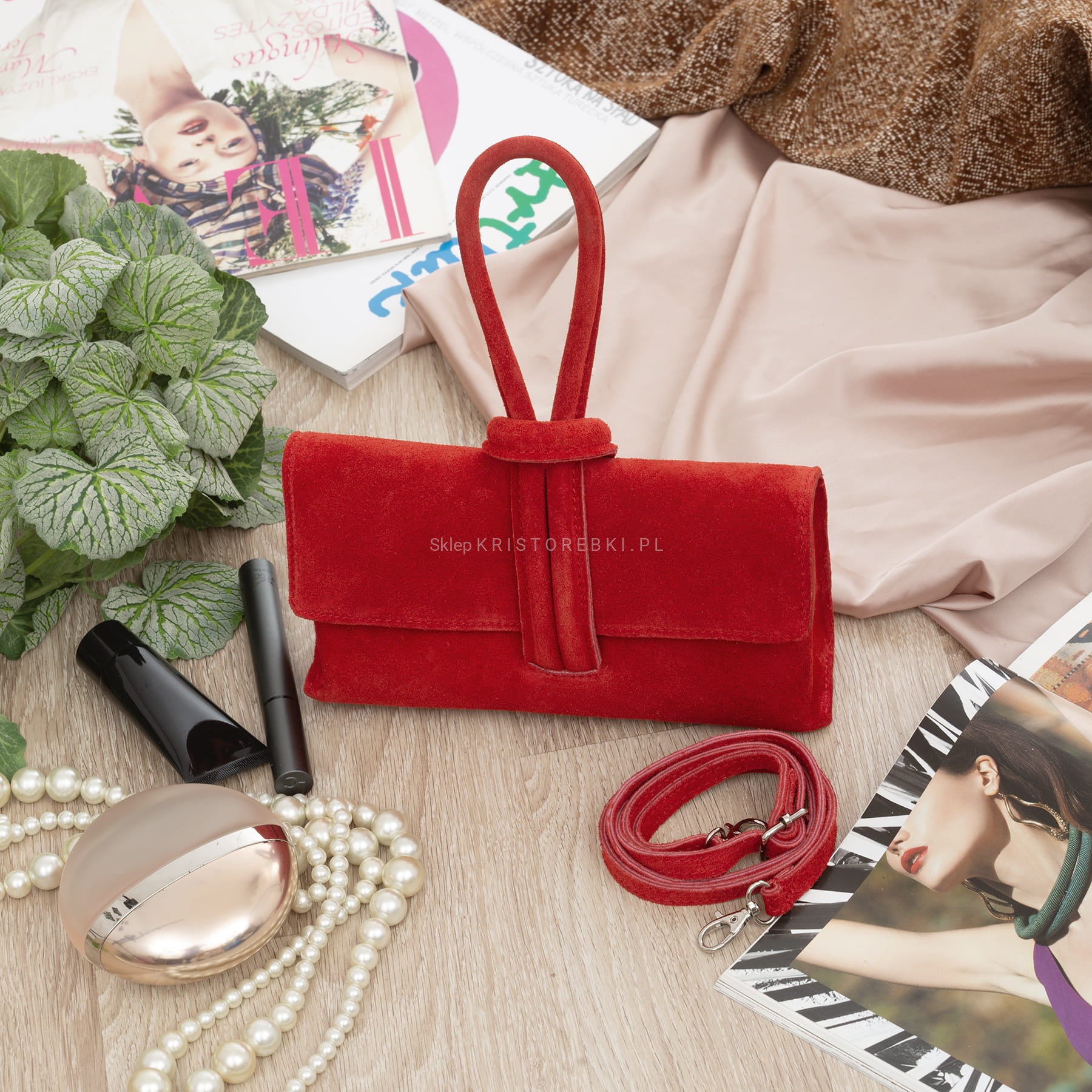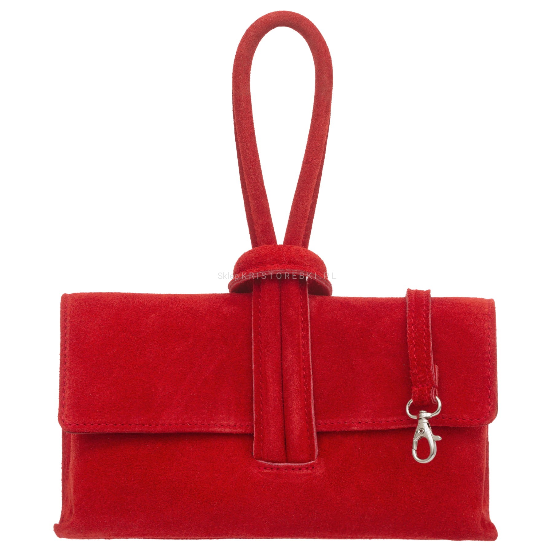 VERA PELLE torebka damska zamszowa listonoszka z paskiem na ramię V678 czerwona