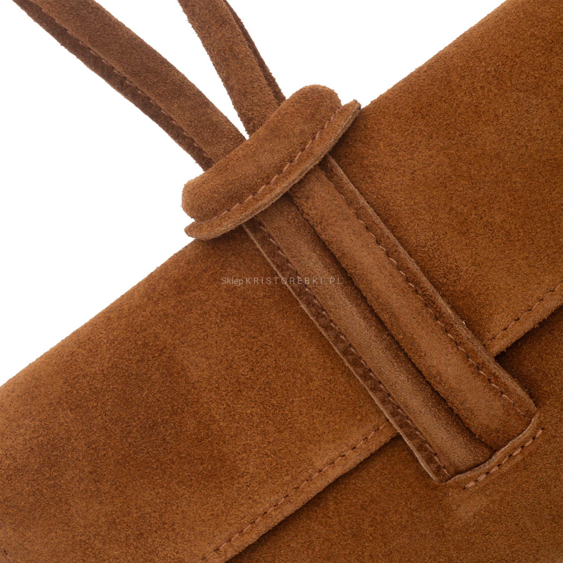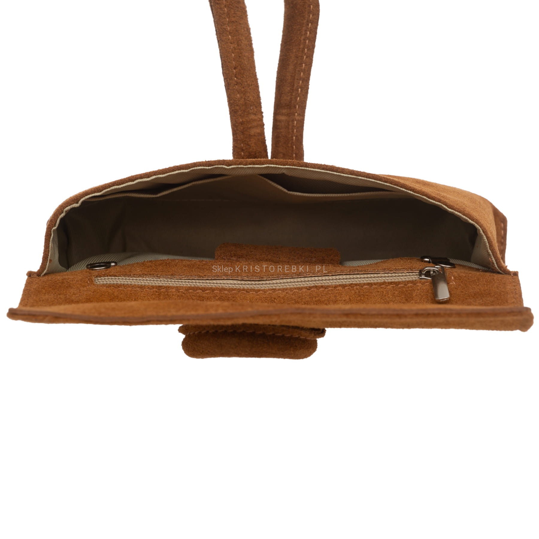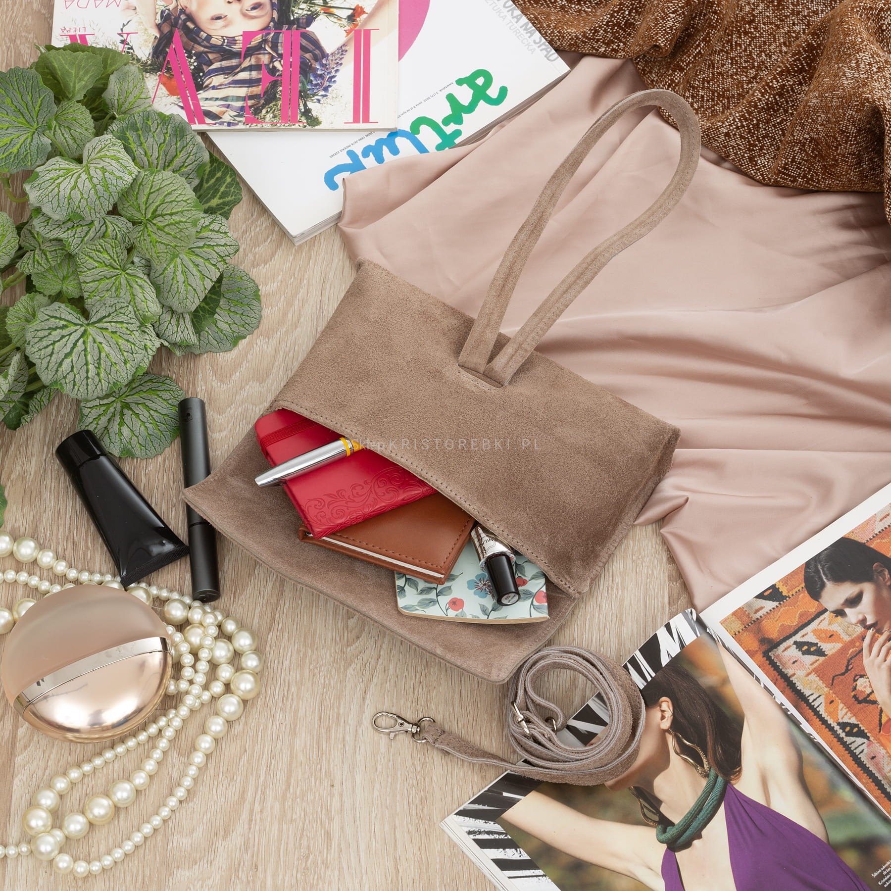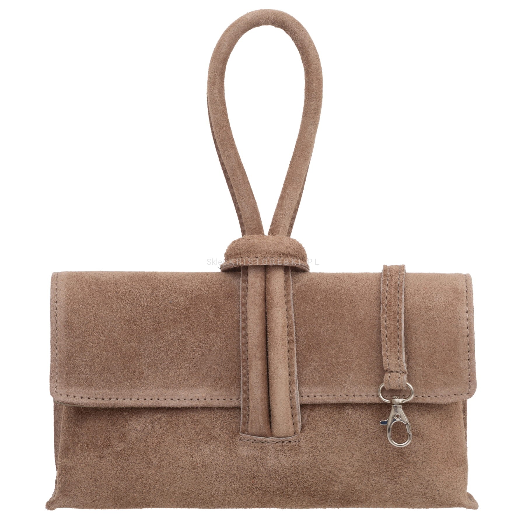 VERA PELLE torebka damska zamszowa listonoszka z paskiem na ramię V678 taupe