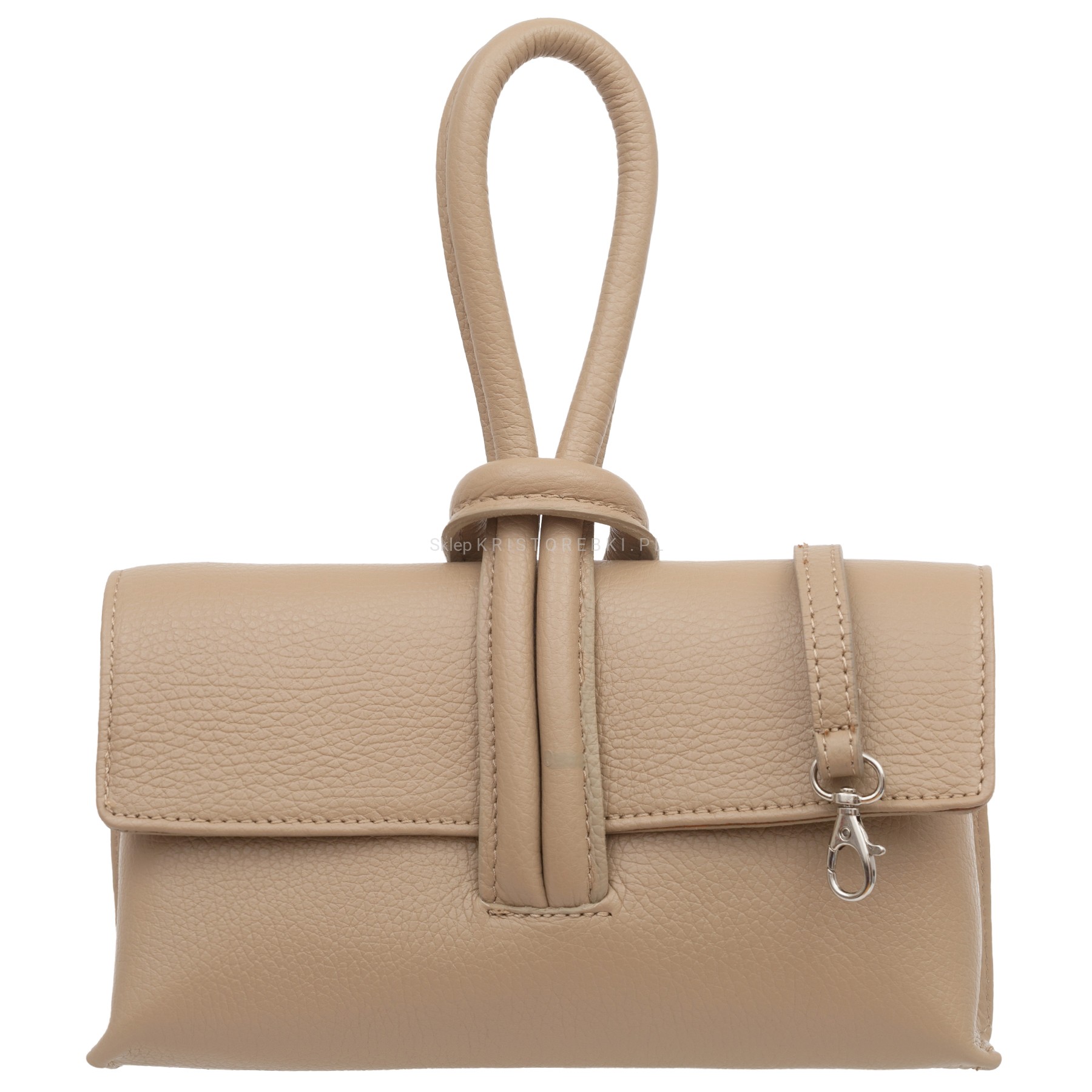 VERA PELLE torebka damska skórzana listonoszka z paskiem na ramię V682 beżowa