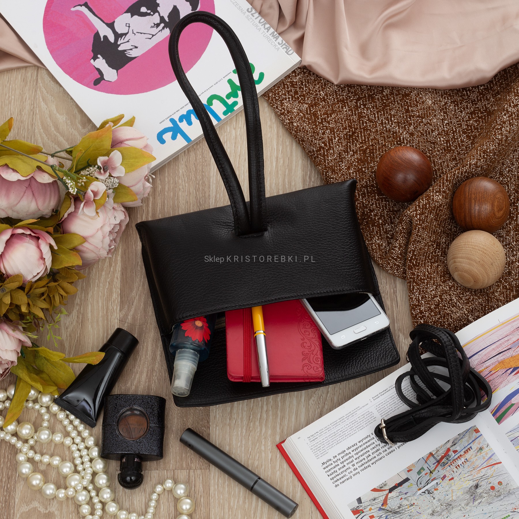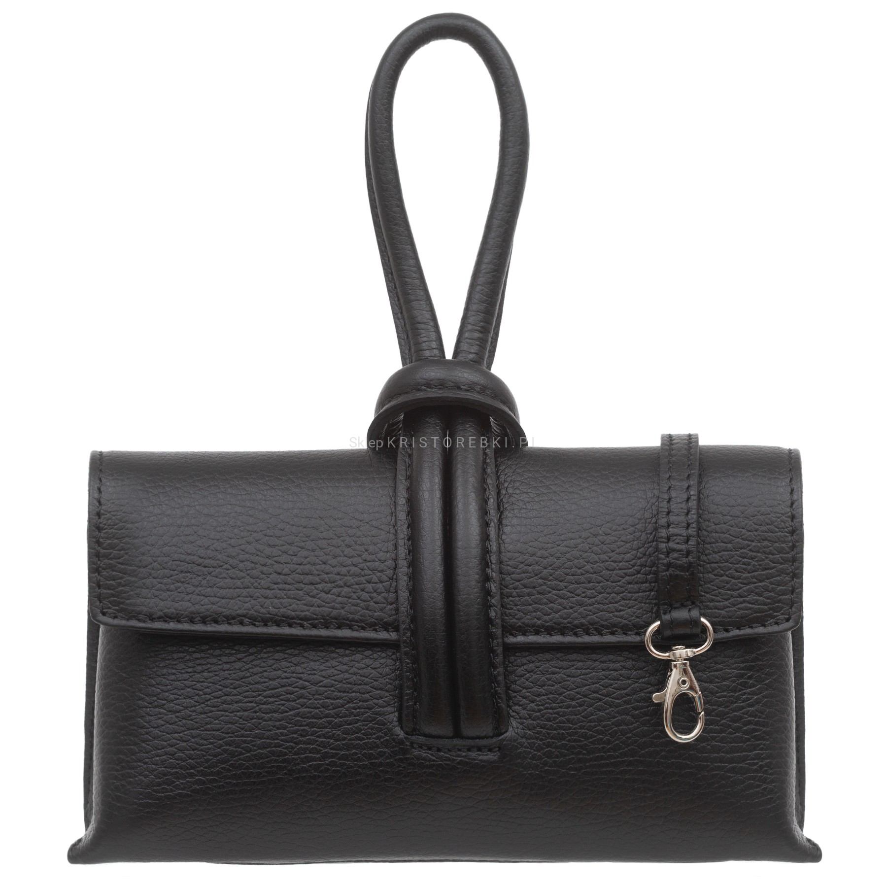 VERA PELLE torebka damska skórzana listonoszka z paskiem na ramię V682 czarna