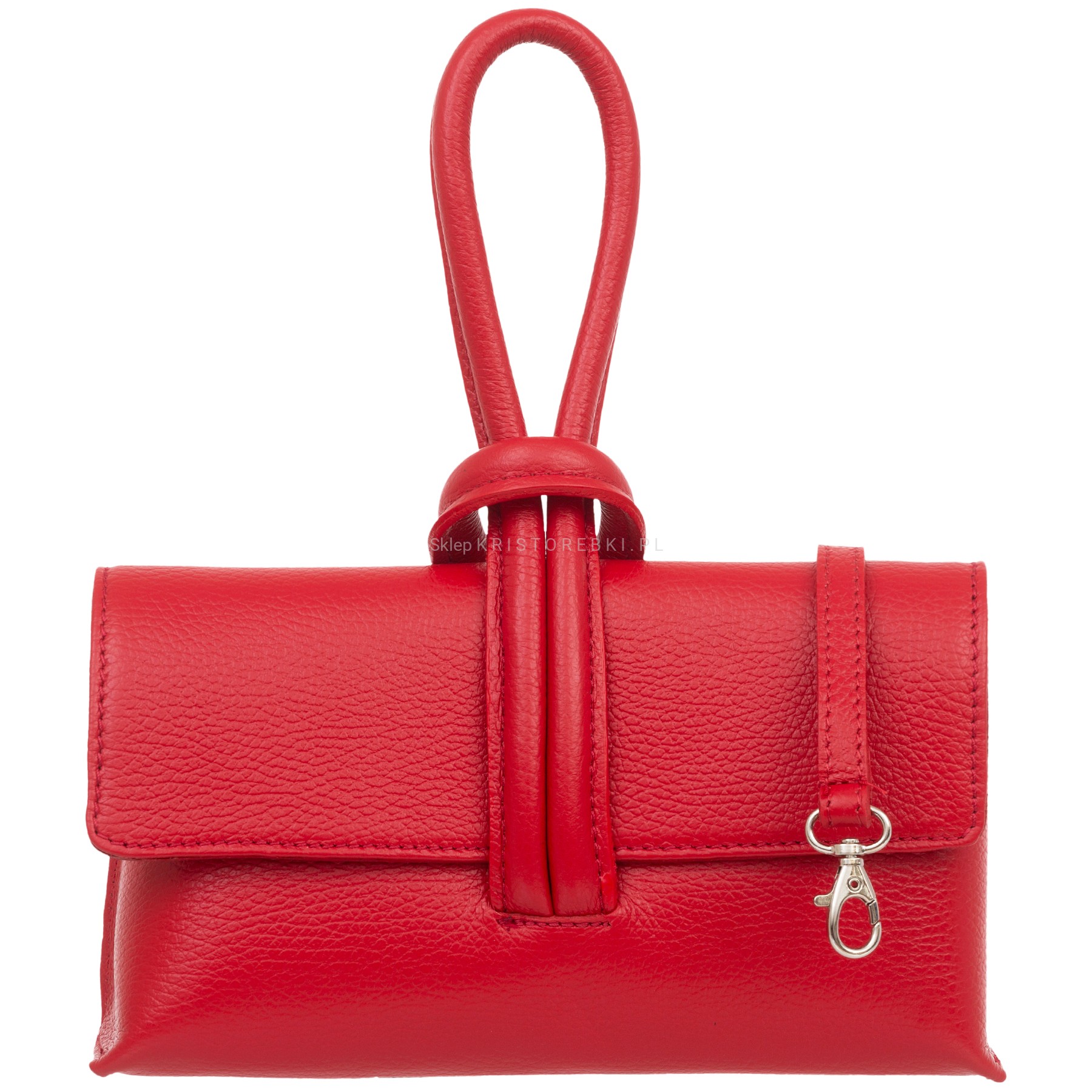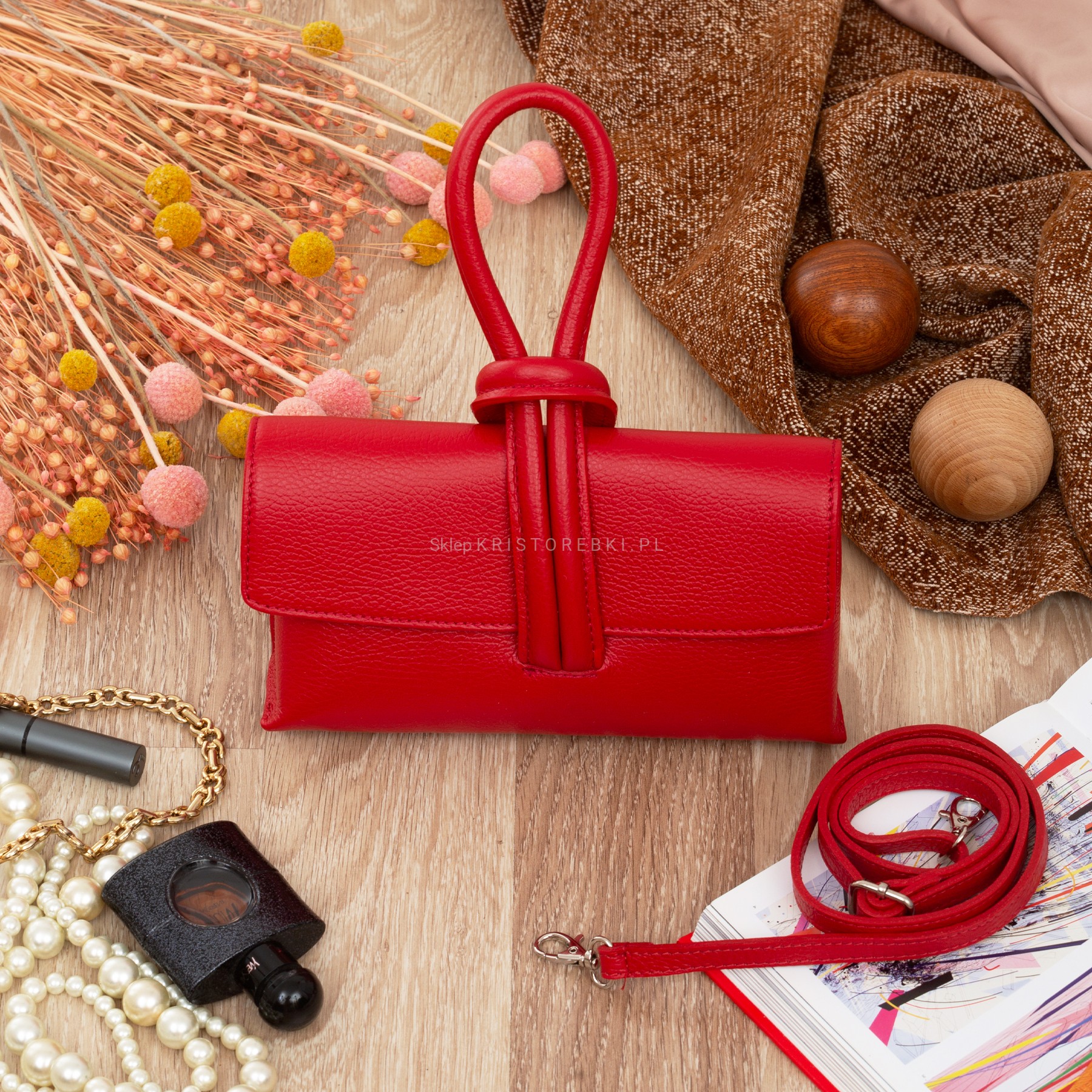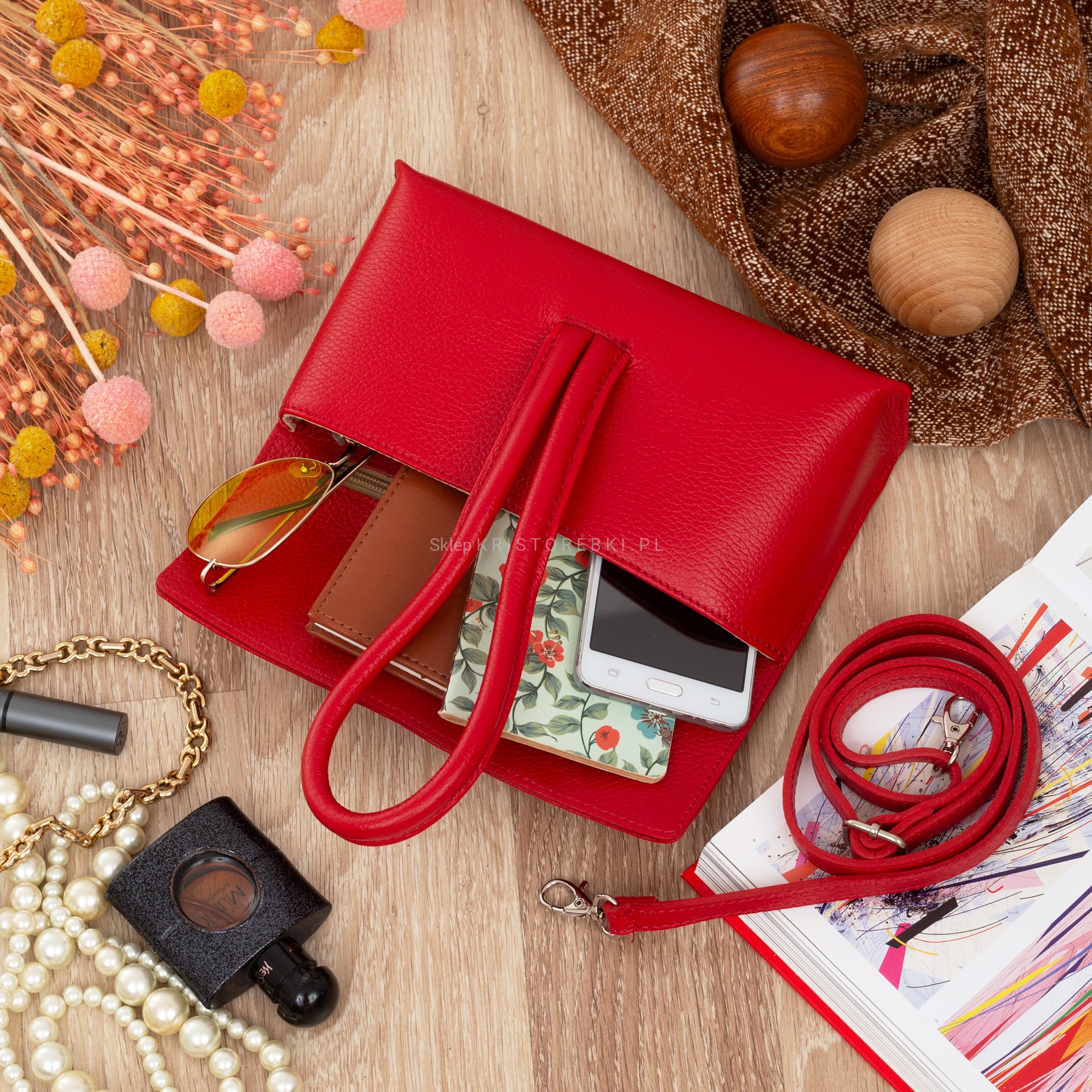 VERA PELLE torebka damska skórzana listonoszka z paskiem na ramię V682 czerwona