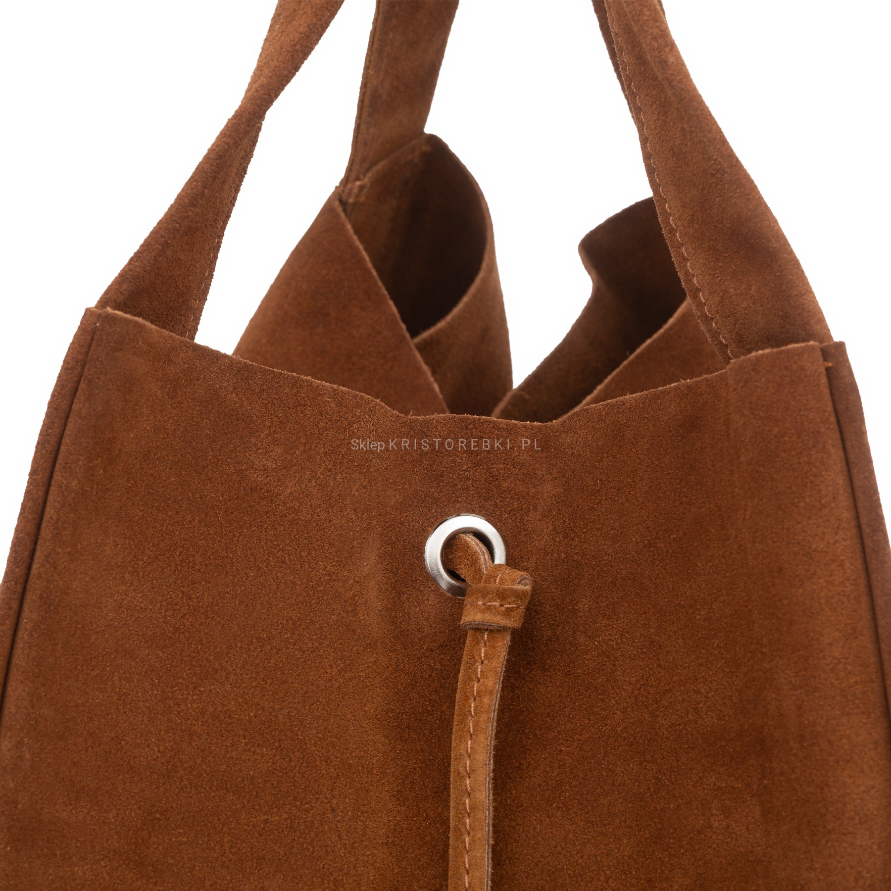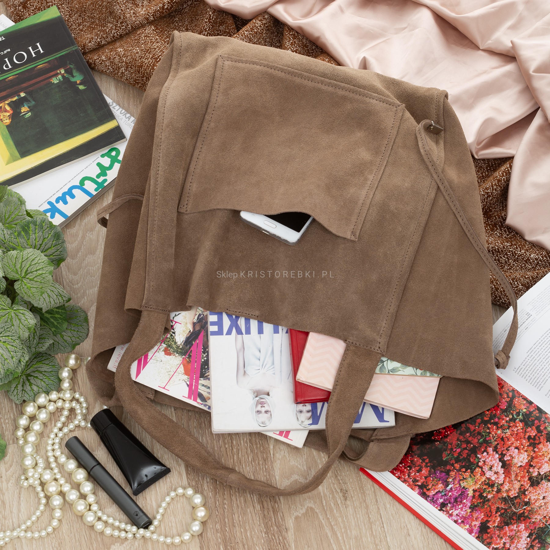 VERA PELLE torebka damska zamszowa shopper z saszetką na ramię V683 taupe