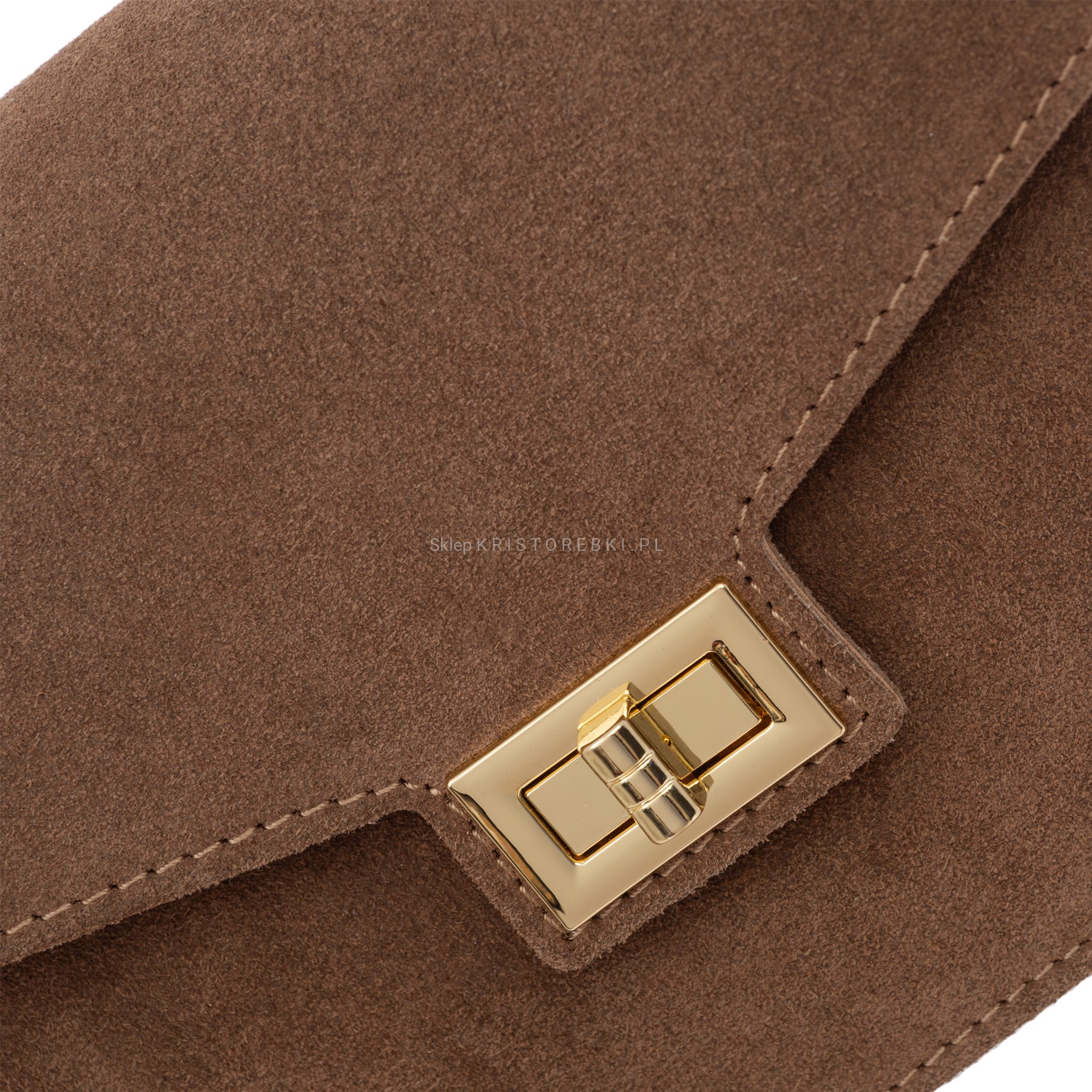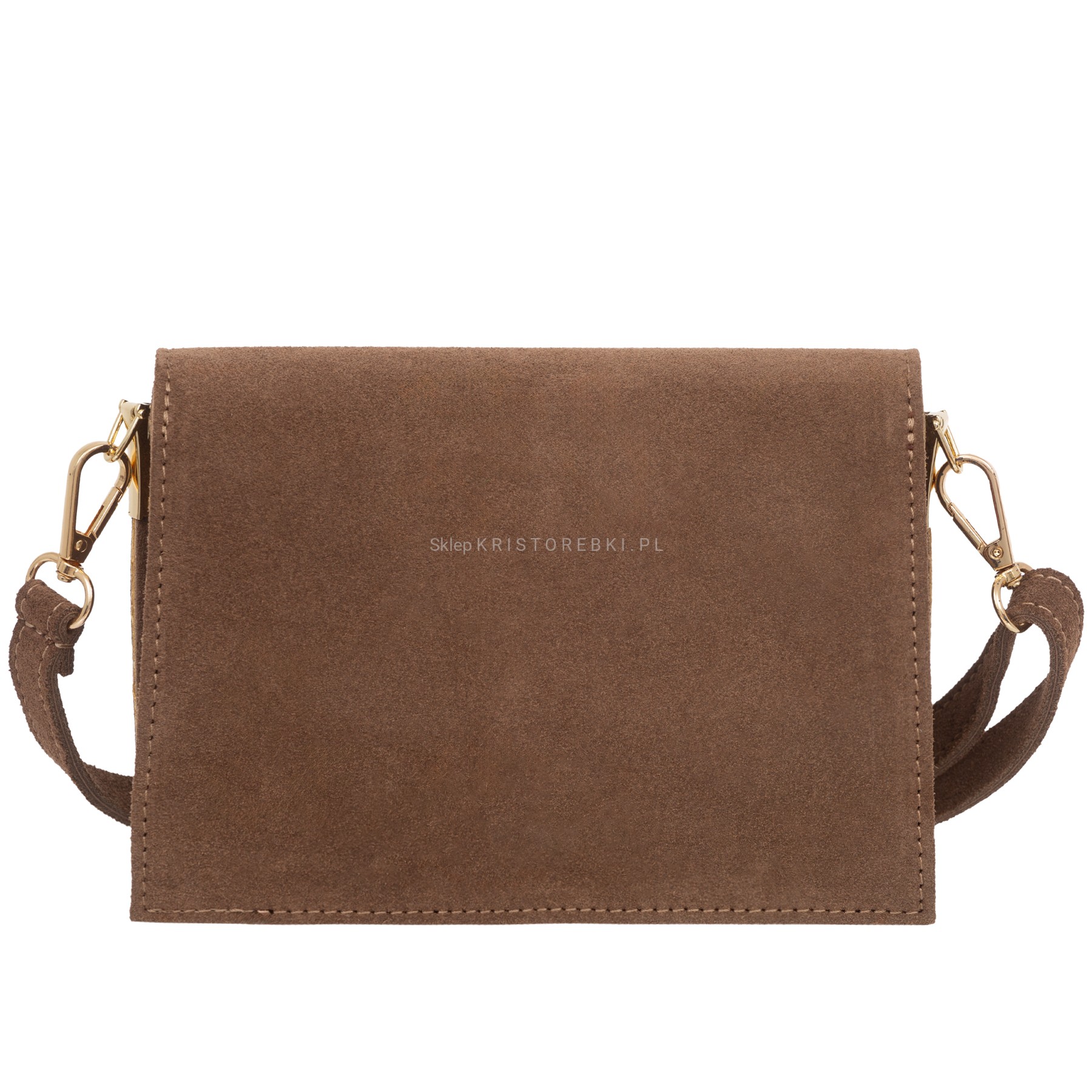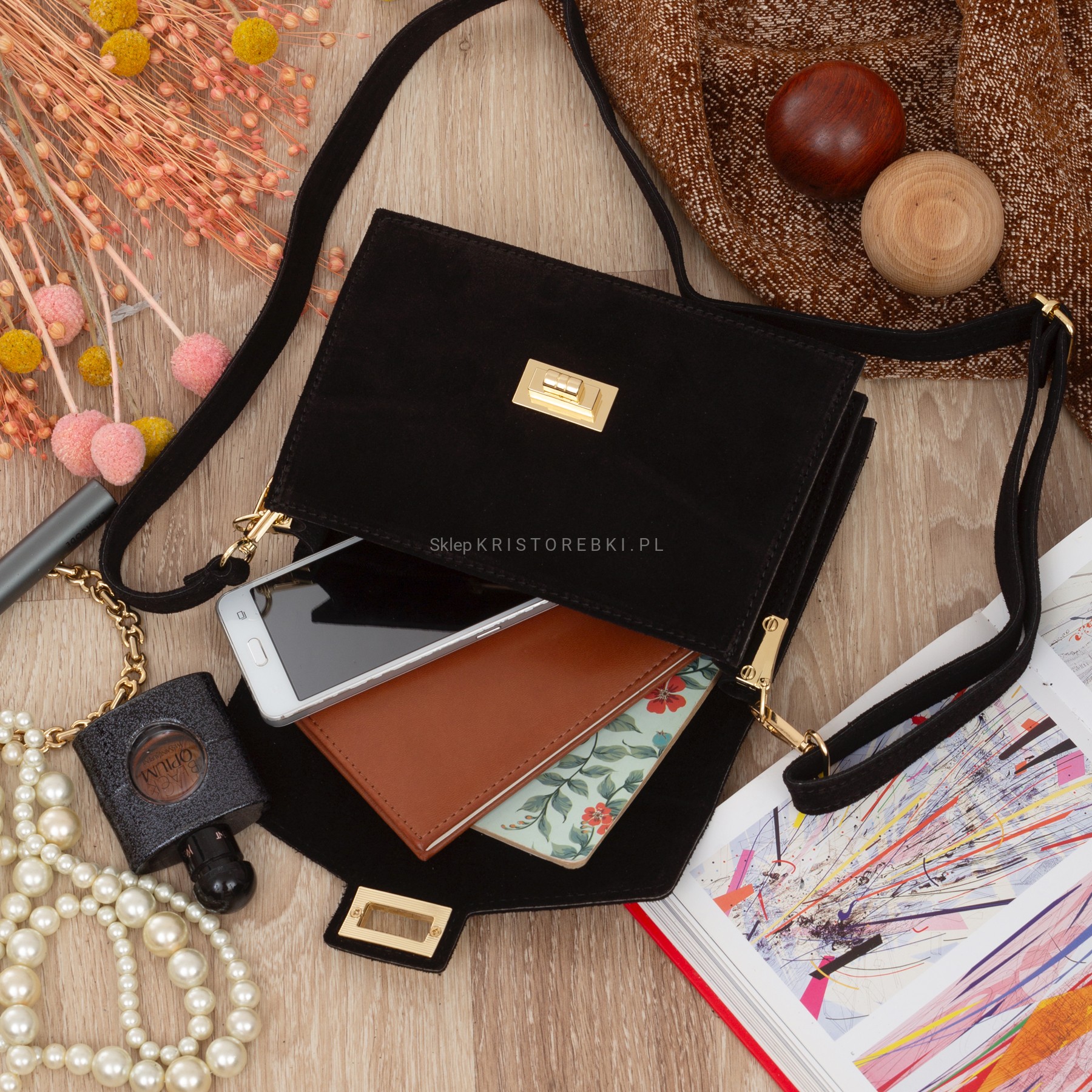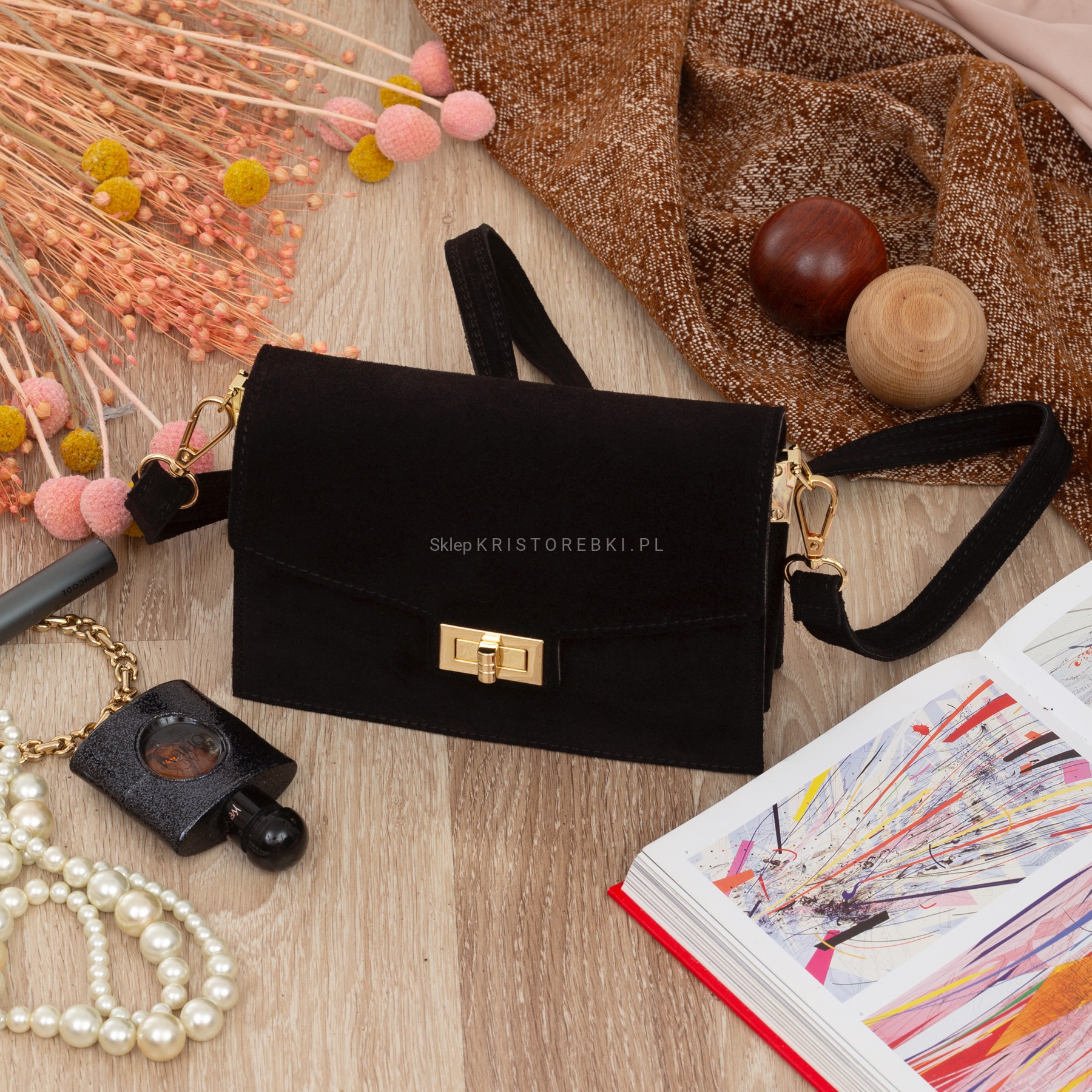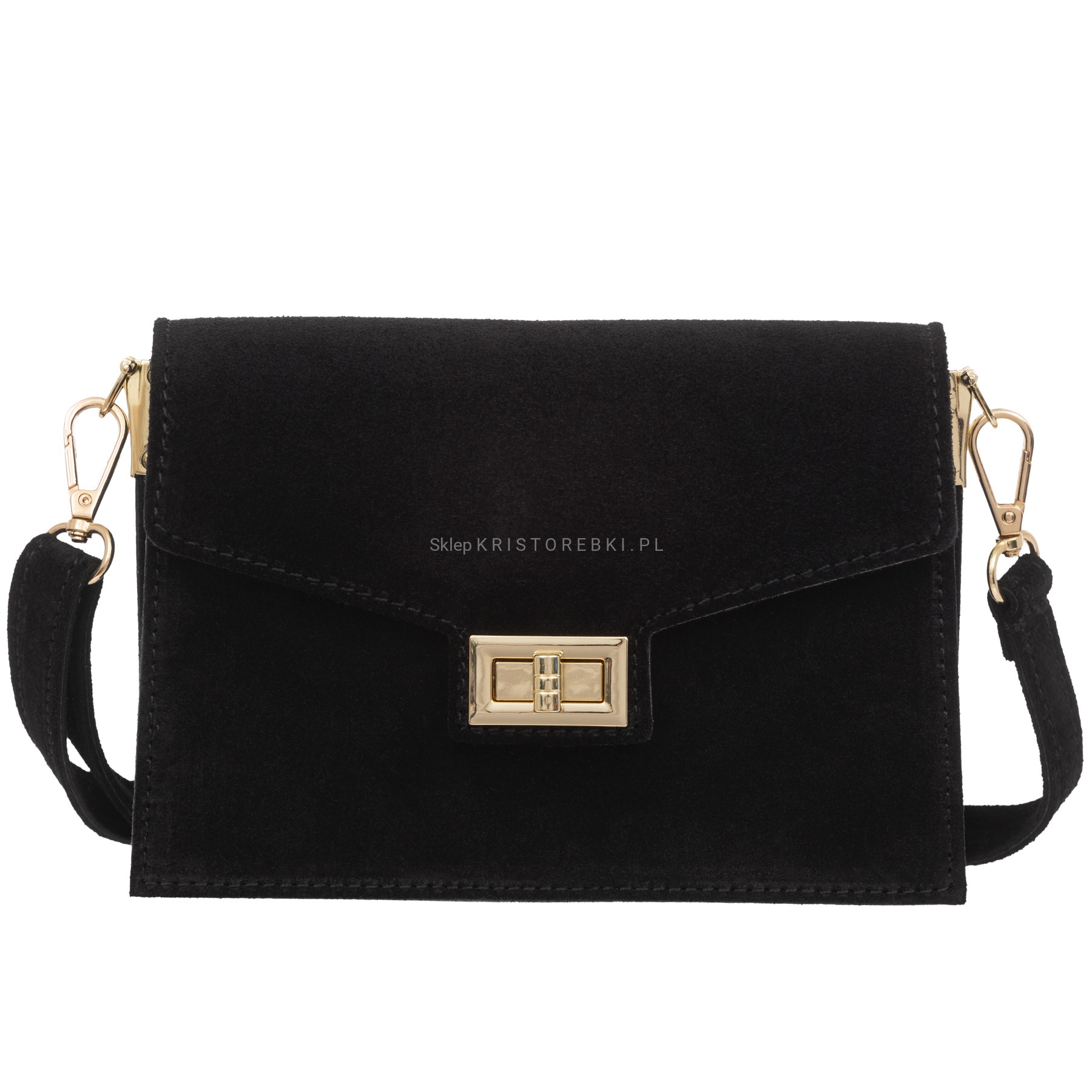 VERA PELLE torebka damska zamszowa listonoszka z klapą i paskiem na ramię V688 czarna