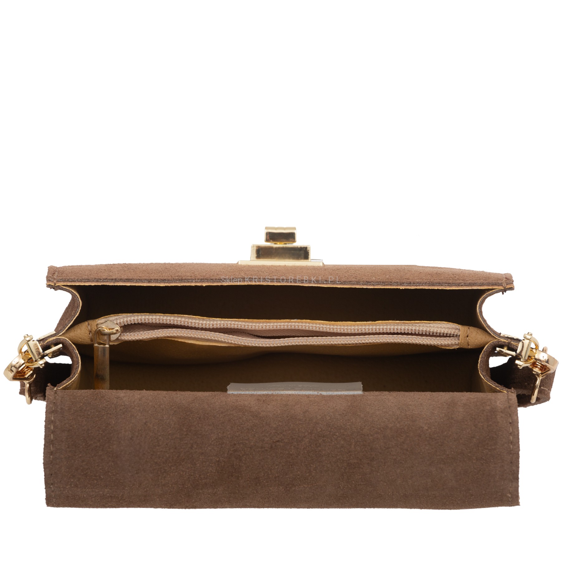 Torebka damska listonoszka znanej i cenionej na rynku europejskim marki VERA PELLE ITALY w kolorze CZARNYM. Uszyta została z najwyższej jakości grubej włoskiej skóry naturalnej zamszowej. Torebka posiada w zestawie długi, odpinany i regulowany pasek do wygodnego noszenia na ramieniu. Dzięki regulacji bez trudu dopasujesz ją do wzrostu i własnych preferencji. Torebka posiada złote okucia i zamykana jest na praktyczny obrotowy bigiel. Dwukomorowy środek wykończony jest estetyczną podszewką. W środku znajduje się przegroda zamykana na suwak. Torebka jest bardzo wygodna i praktyczna. Będzie świetnym dodatkiem do codziennych i wyjściowych stylizacji.