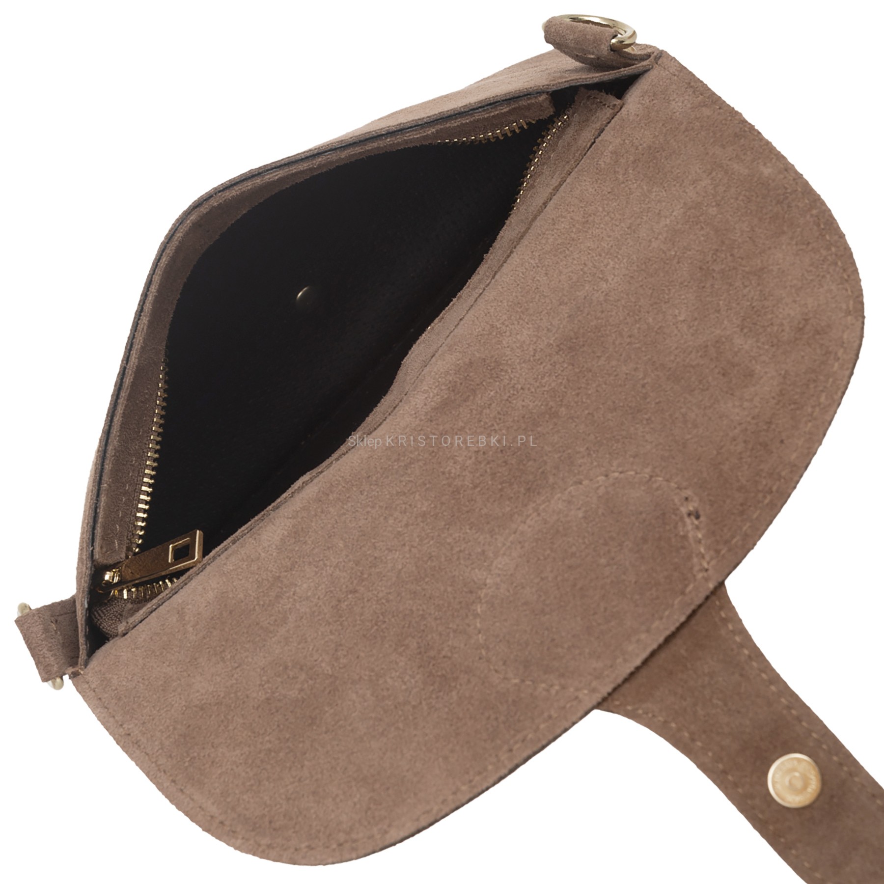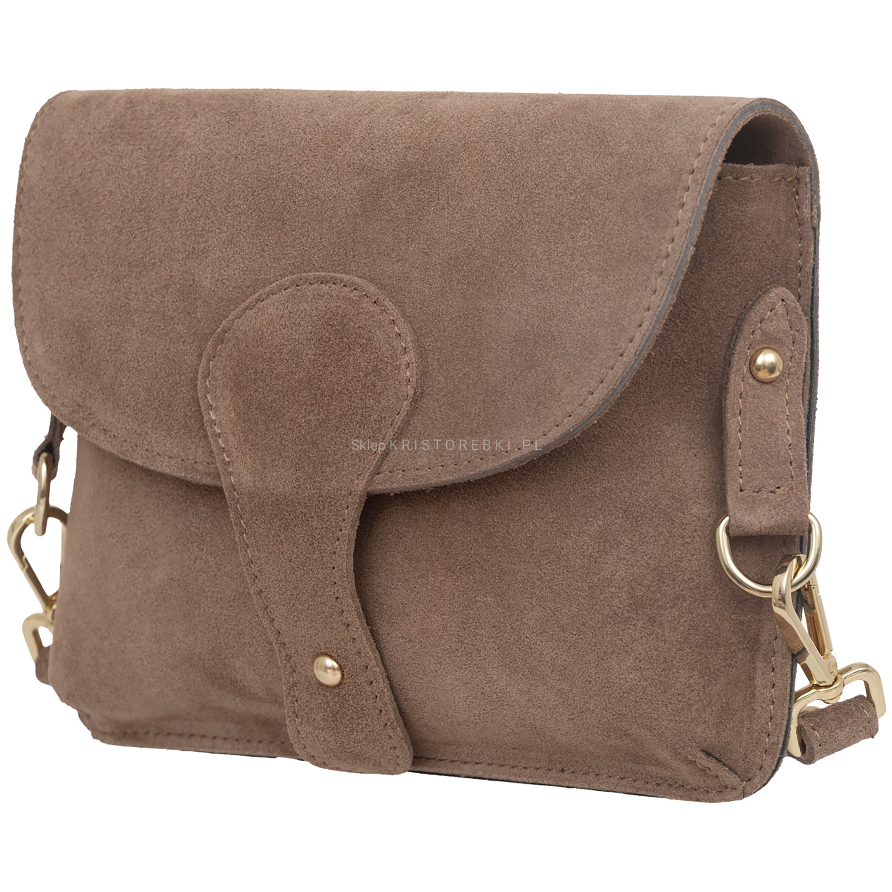 VERA PELLE torebka damska zamszowa listonoszka instagramka z szerokim paskiem na ramię V694 ciemna brązowa