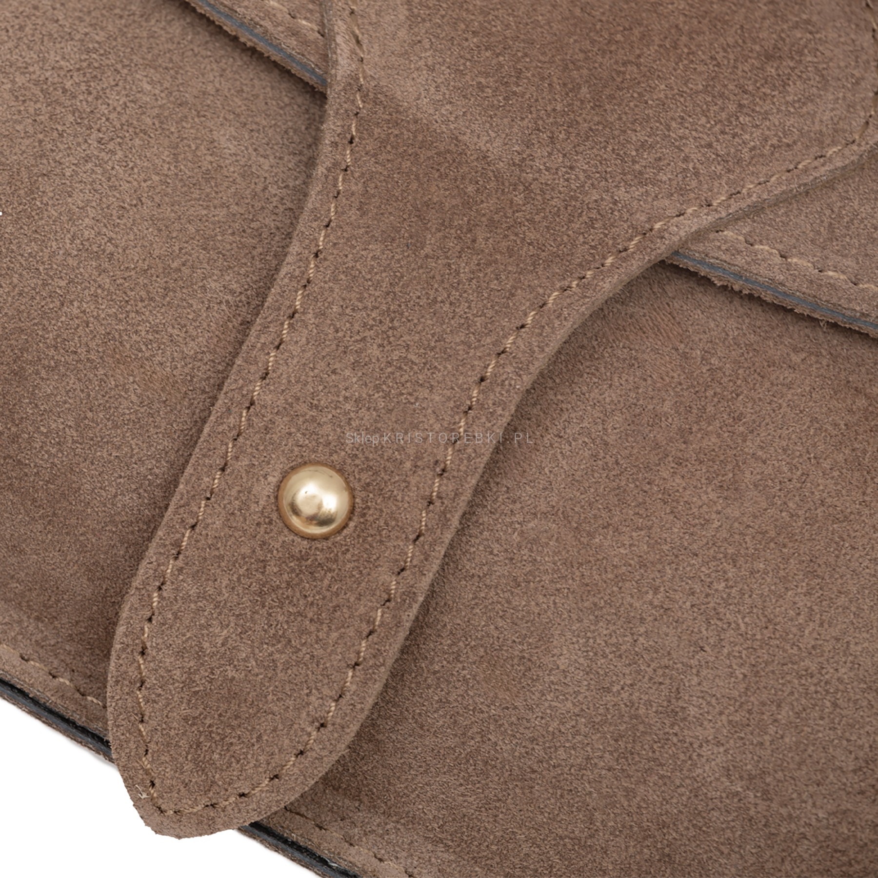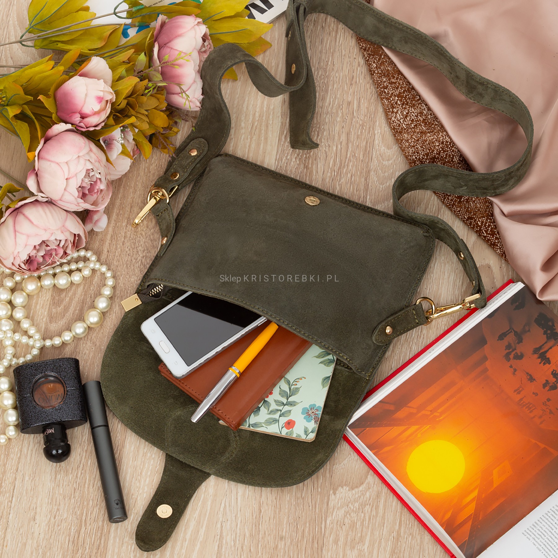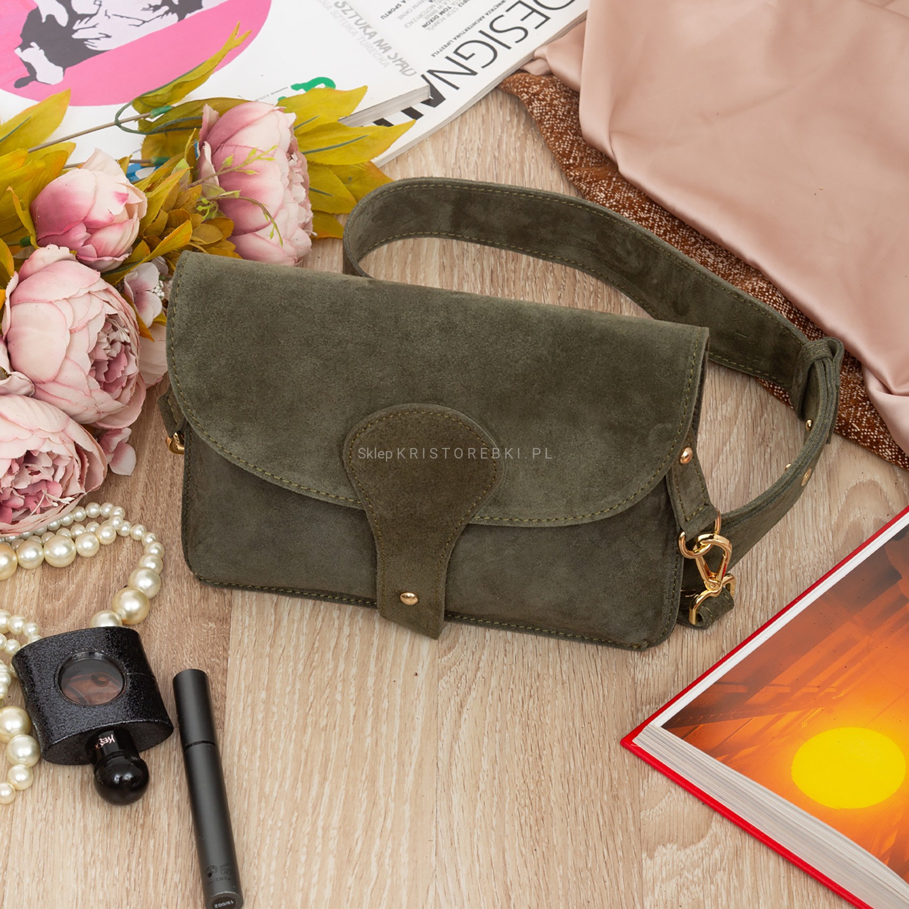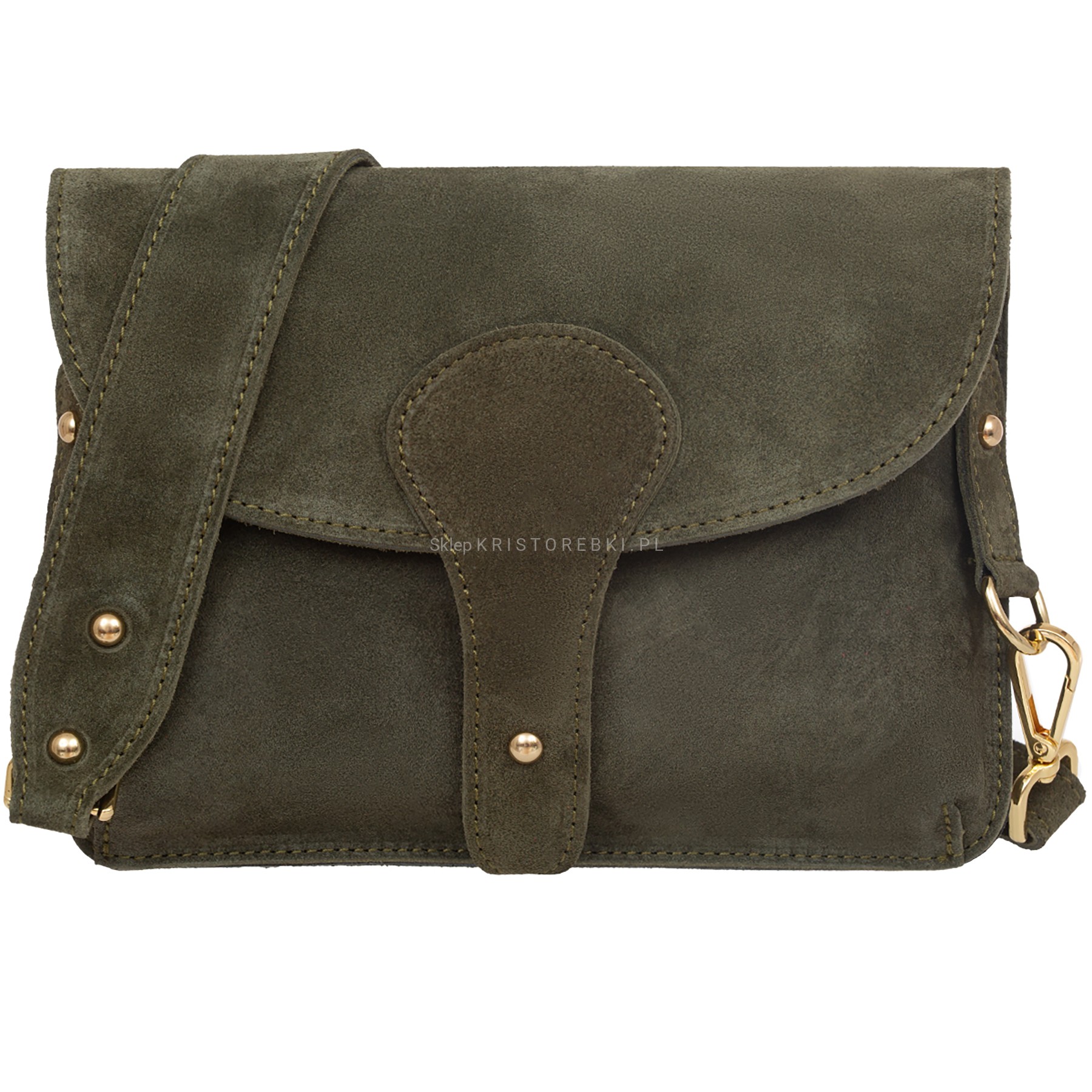 VERA PELLE torebka damska zamszowa listonoszka instagramka z szerokim paskiem na ramię V694 oliwkowa