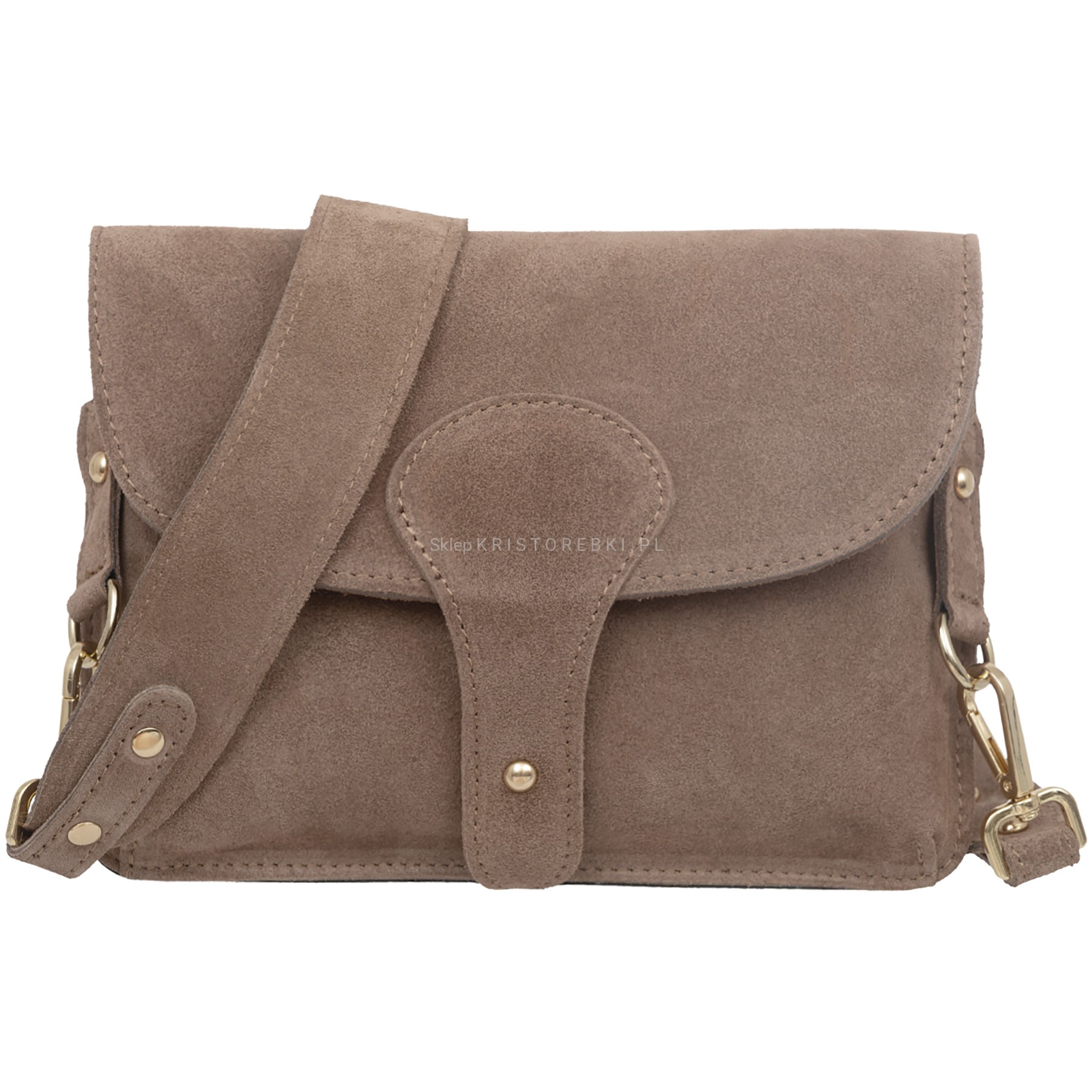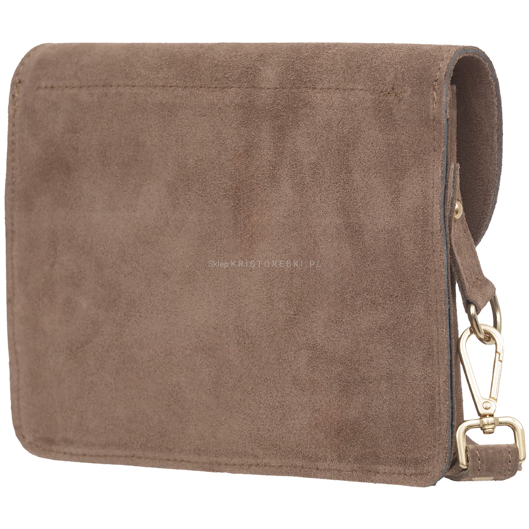 VERA PELLE torebka damska zamszowa listonoszka instagramka z szerokim paskiem na ramię V694 taupe