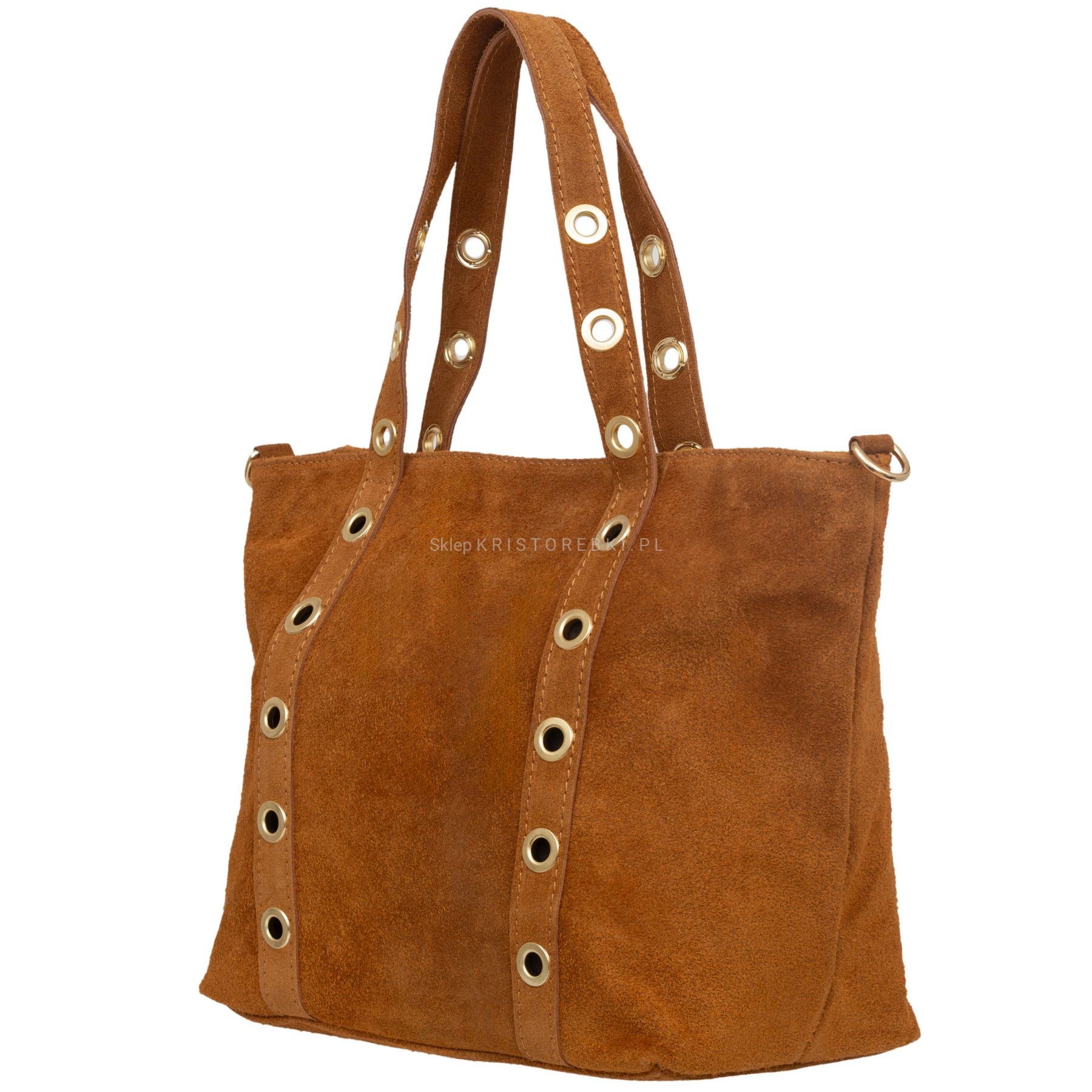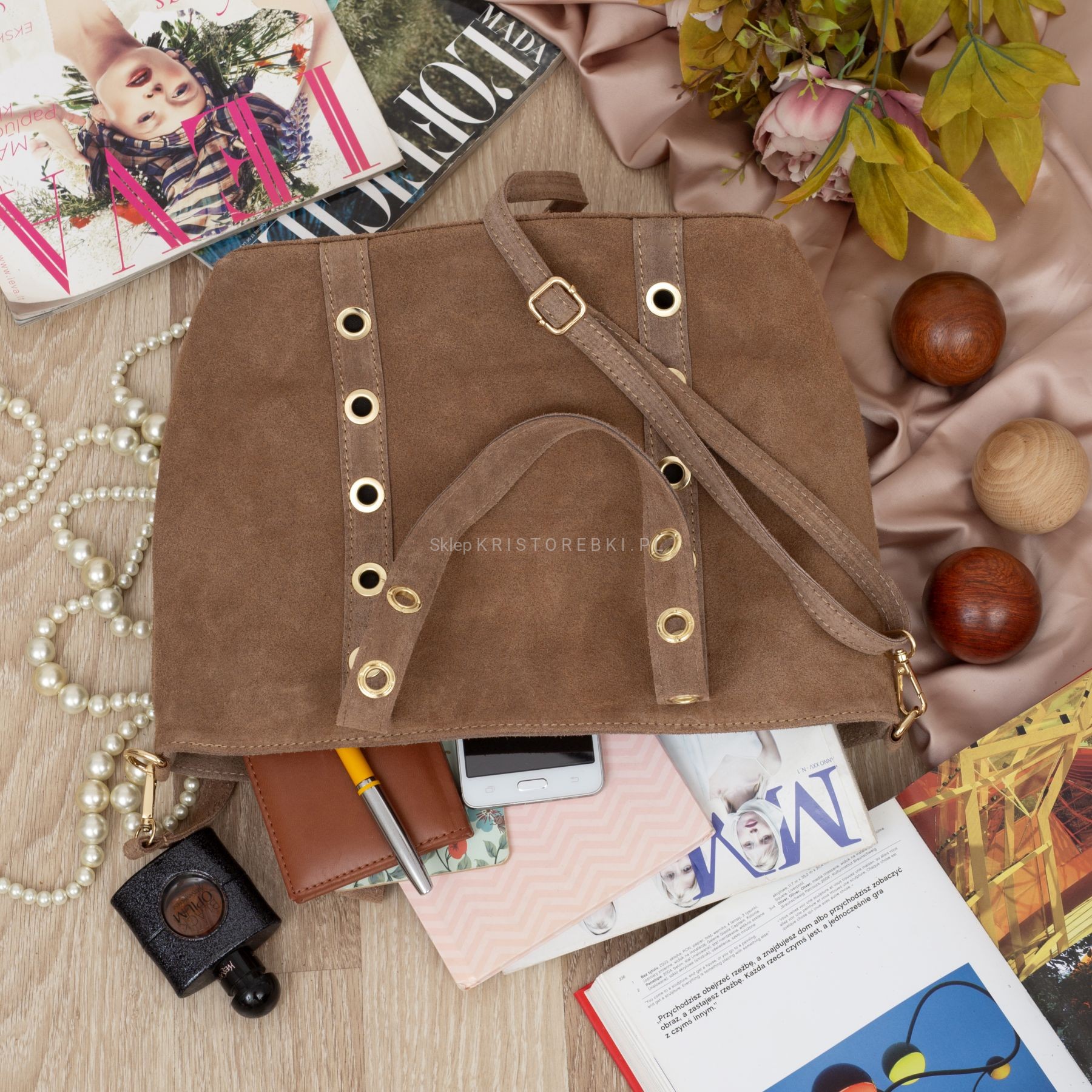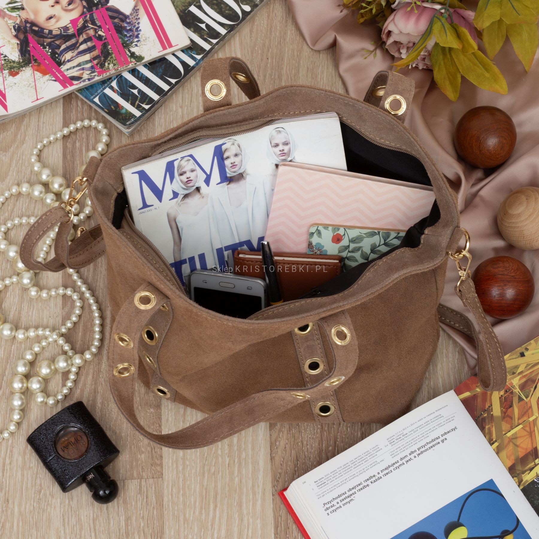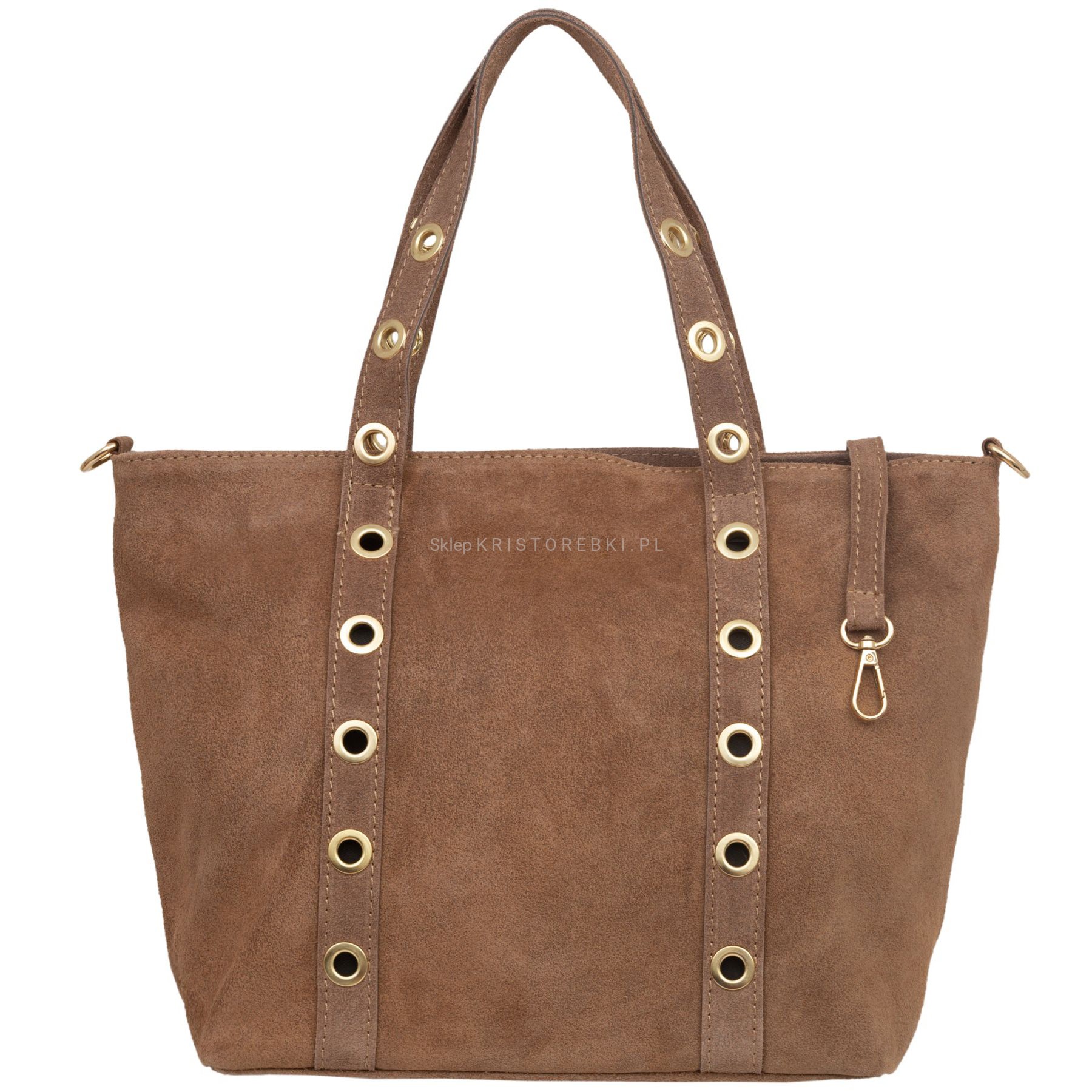 VERA PELLE torebka damska zamszowa shopper z kółkami i paskiem na ramię V699 taupe