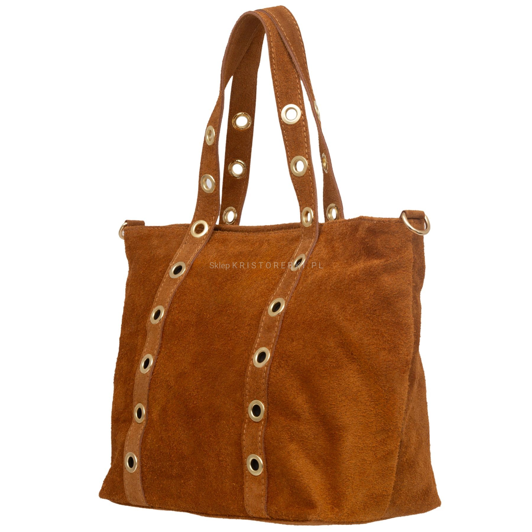 Torebka damska typu shopper znanej i cenionej na rynku europejskim marki VERA PELLE ITALY w kolorze TAUPE. Uszyta została bardzo starannie z najwyższej jakości i przyjemnej w dotyku włoskiej skóry zamszowej. Torebka posiada długie rączki, dzięki czemu można ją wygodnie nosić w ręku i na ramieniu. Torebka posiada dodatkowo odpinany i regulowany pasek, dzięki czemu można ją nosić na wiele sposobów. Torebka posiada ozdobne kółka i okucia w kolorze złotym oraz zamykana jest na suwak. Jednokomorowy środek wykończony został podszewką. W środku dodatkowo znajduje się praktyczna kieszeń zamykana na suwak. Torebka jest bardzo pojemna i praktyczna w codziennym użytkowaniu.