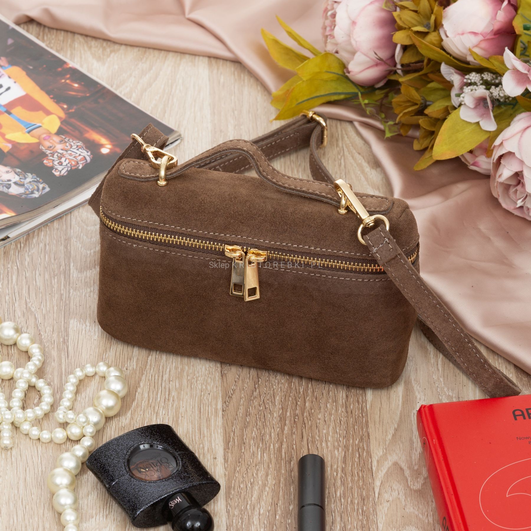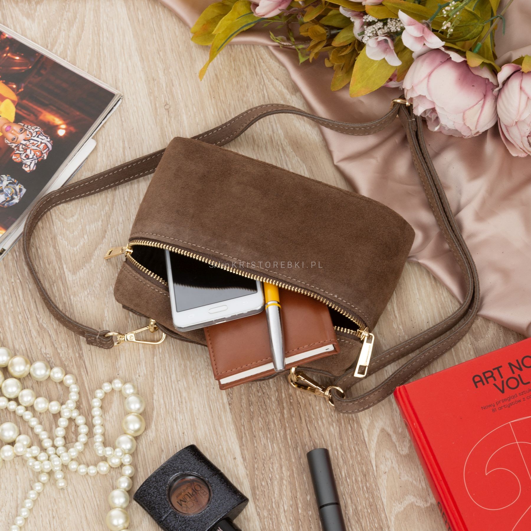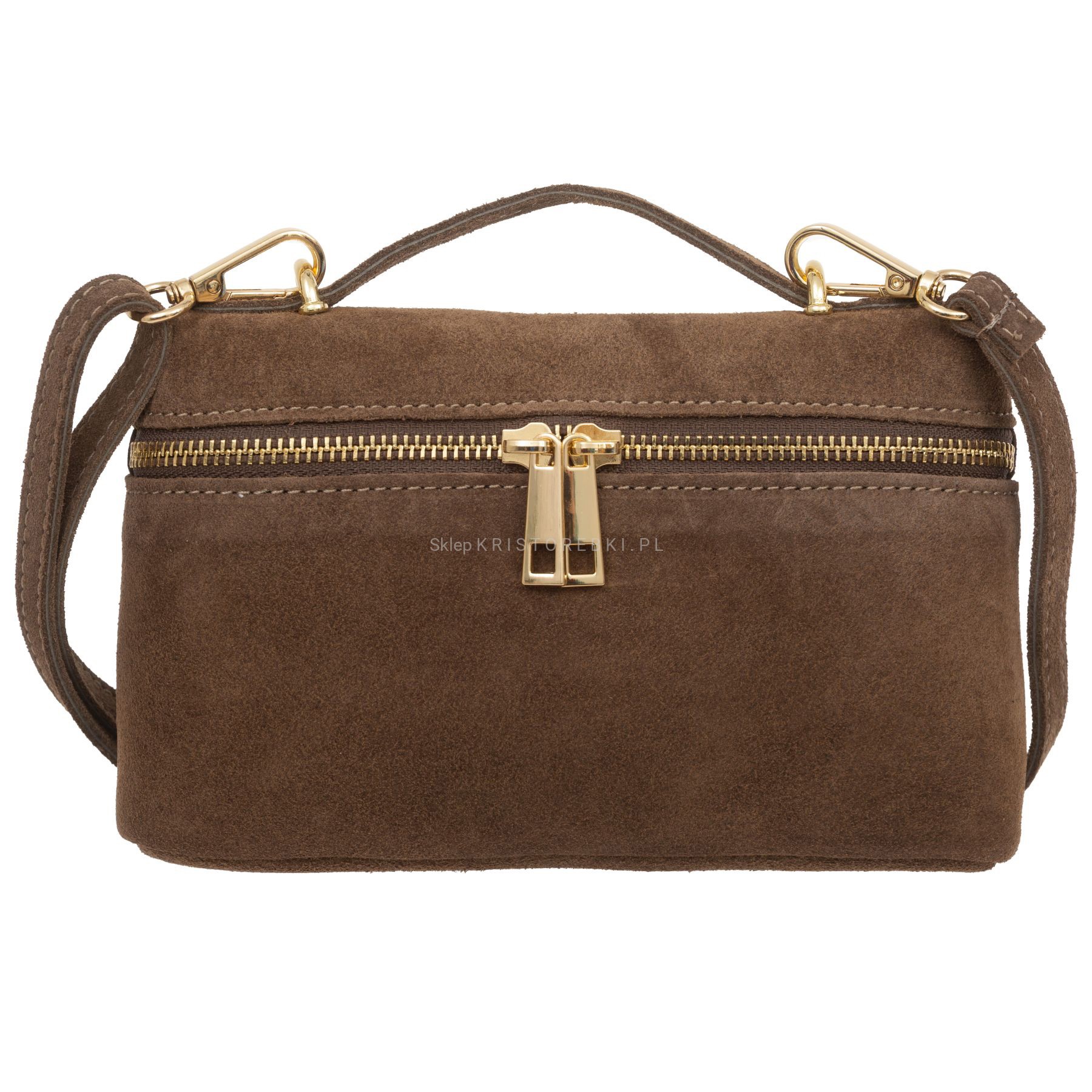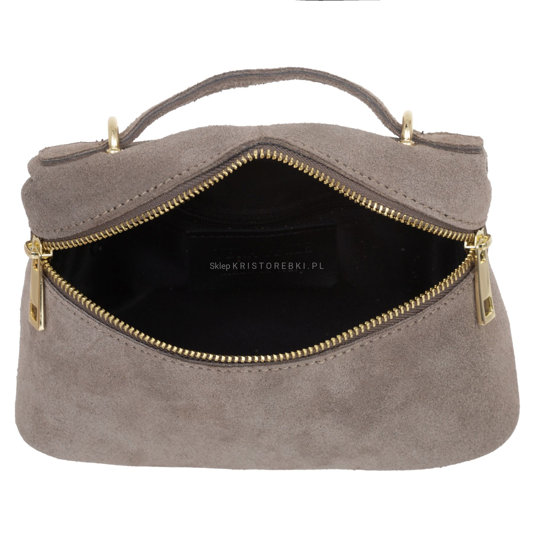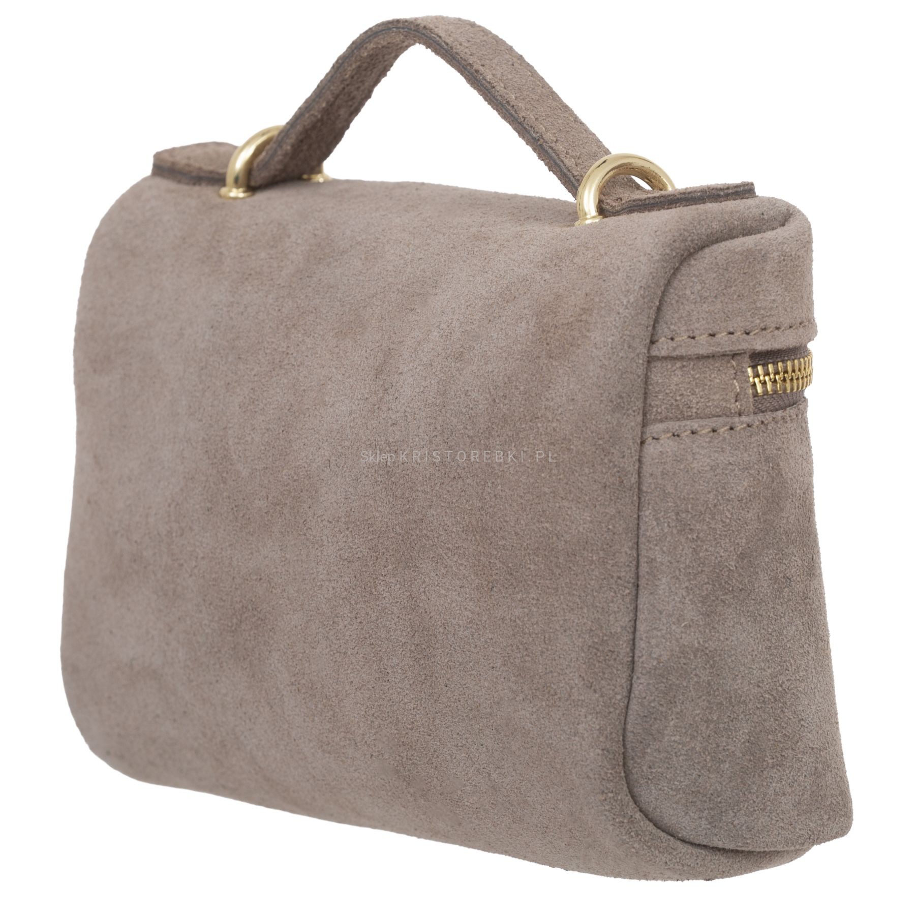 Torebka damska mała listonoszka znanej i cenionej na rynku europejskim marki VERA PELLE ITALY dostępna w kolorze TAUPE. Uszyta została z najwyższej jakości i przyjemnej w dotyku włoskiej zamszowej skóry naturalnej. Torebka posiada praktyczną rączkę do noszenia w ręku oraz długi, regulowany i odpinany pasek do wygodnego noszenia na ramieniu. Dzięki regulacji bez trudu można ją dopasować do wzrostu i własnych preferencji. Torebka posiada złote okucia i zamykana jest na suwak. Środek wykończony został estetyczną podszewką. Dodatkowo torebka posiada w środku praktyczną kieszonkę zamykaną na suwak. Mimo niewielkich rozmiarów jest bardzo wygodna i praktyczna. Będzie świetnym dodatkiem do codziennych i wyjściowych stylizacji.