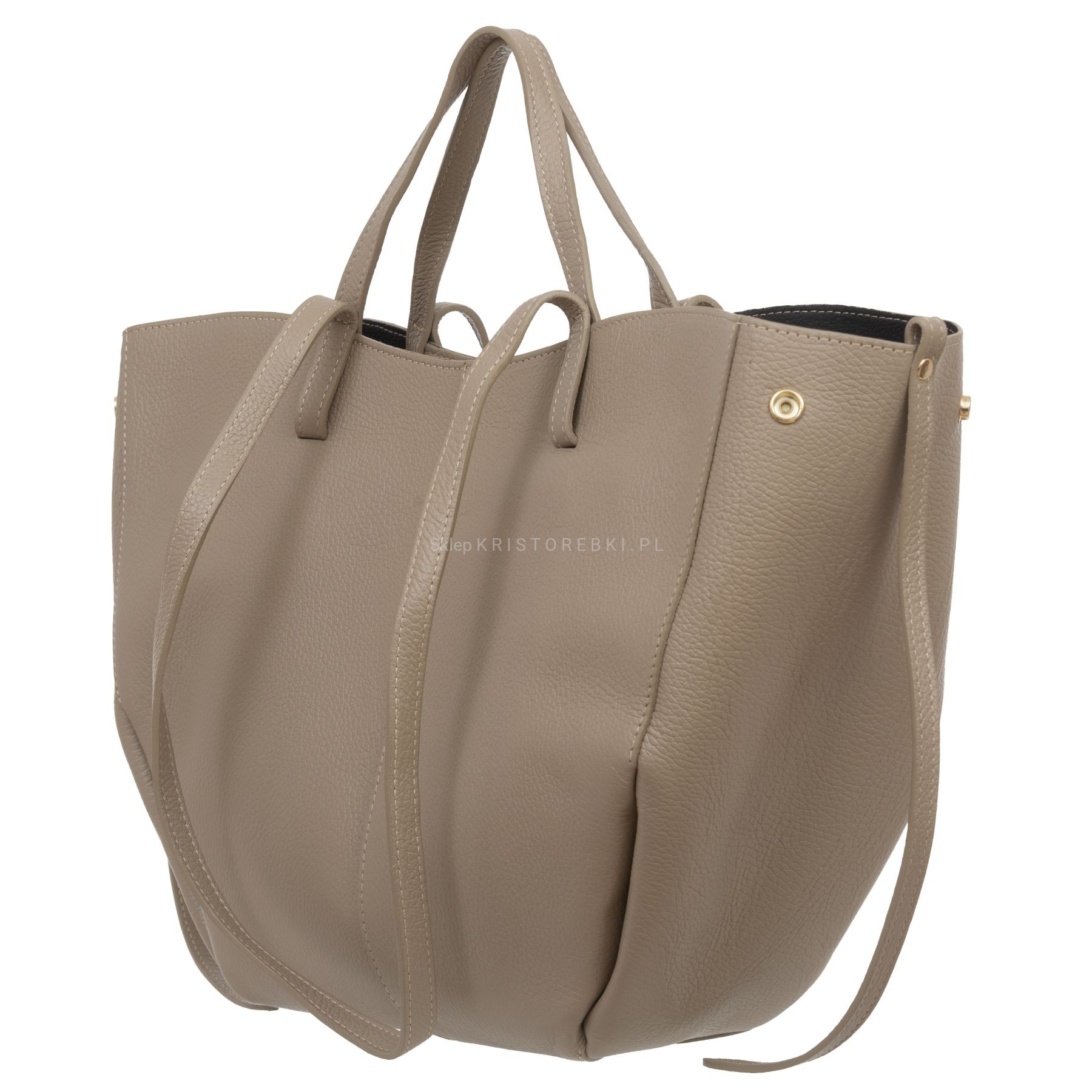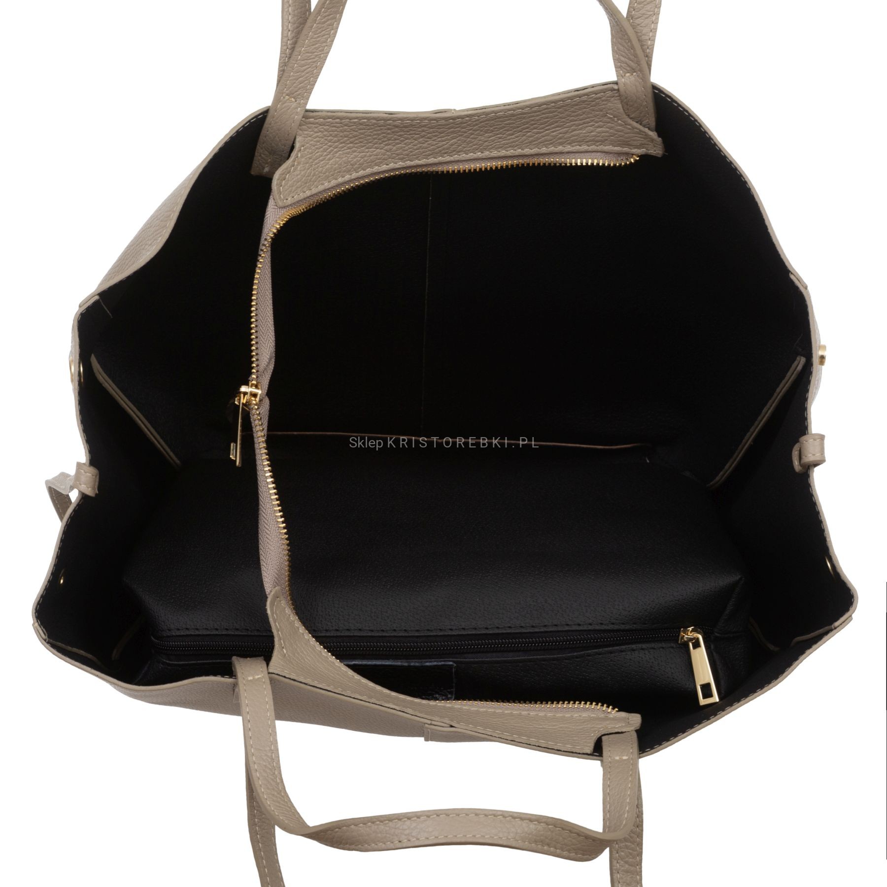 VERA PELLE torebka damska skórzana shopper duża rozpinana na ramię V713 jasna żółta