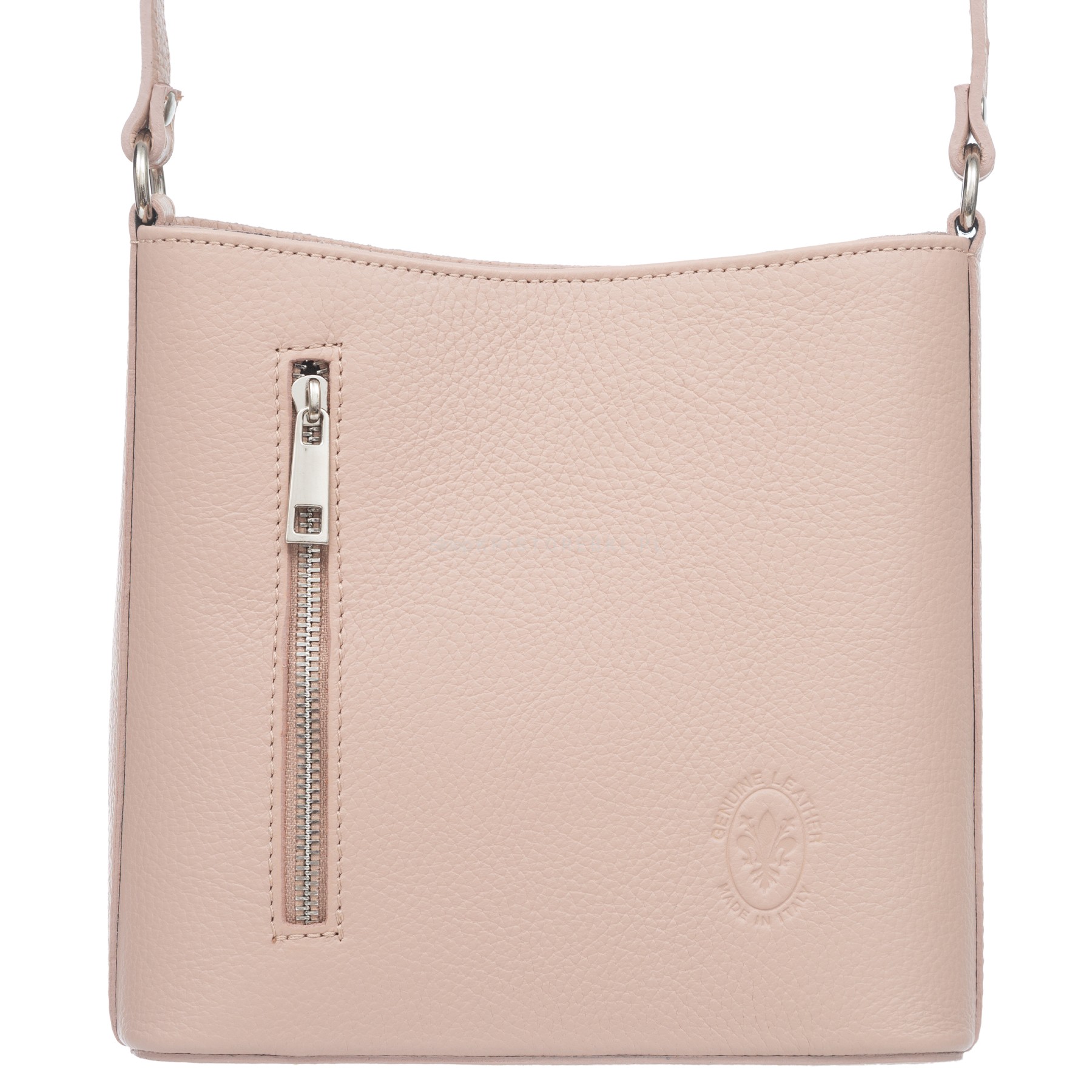 Torebka damska listonoszka znanej i cenionej na rynku europejskim marki VERA PELLE ITALY w kolorze JASNEGO RÓŻU. Uszyta została z najwyższej jakości włoskiej skóry naturalnej z widoczną fakturą. Torebka posiada w zestawie długi i regulowany pasek do wygodnego noszenia na ramieniu. Dzięki regulacji bez trudu można ją dopasować do wzrostu i własnych preferencji. Torebka posiada srebrne okucia i zamykana jest na praktyczny suwak. Jednokomorowy środek wykończony został estetyczną podszewką. W środku dodatkowo znajduje się praktyczna kieszonka zamykana na suwak. Z przodu znajduje się pionowa kieszeń zamykana na suwak a z tyłu znajduje się kolejna praktyczna pozioma kieszeń zamykana na suwak. Torebka jest bardzo wygodna i praktyczna. Będzie świetnym dodatkiem do codziennych i wyjściowych stylizacji.