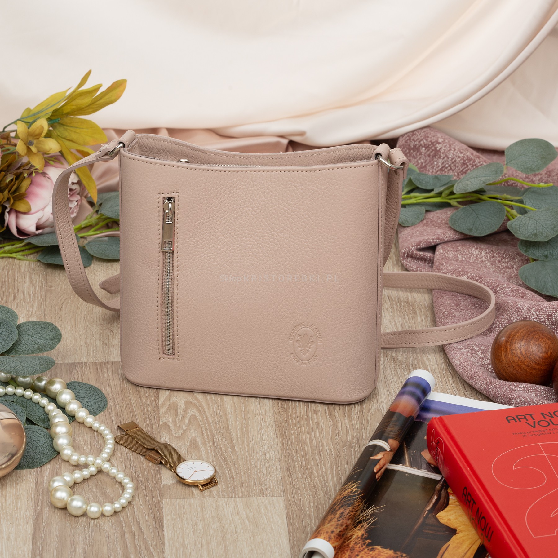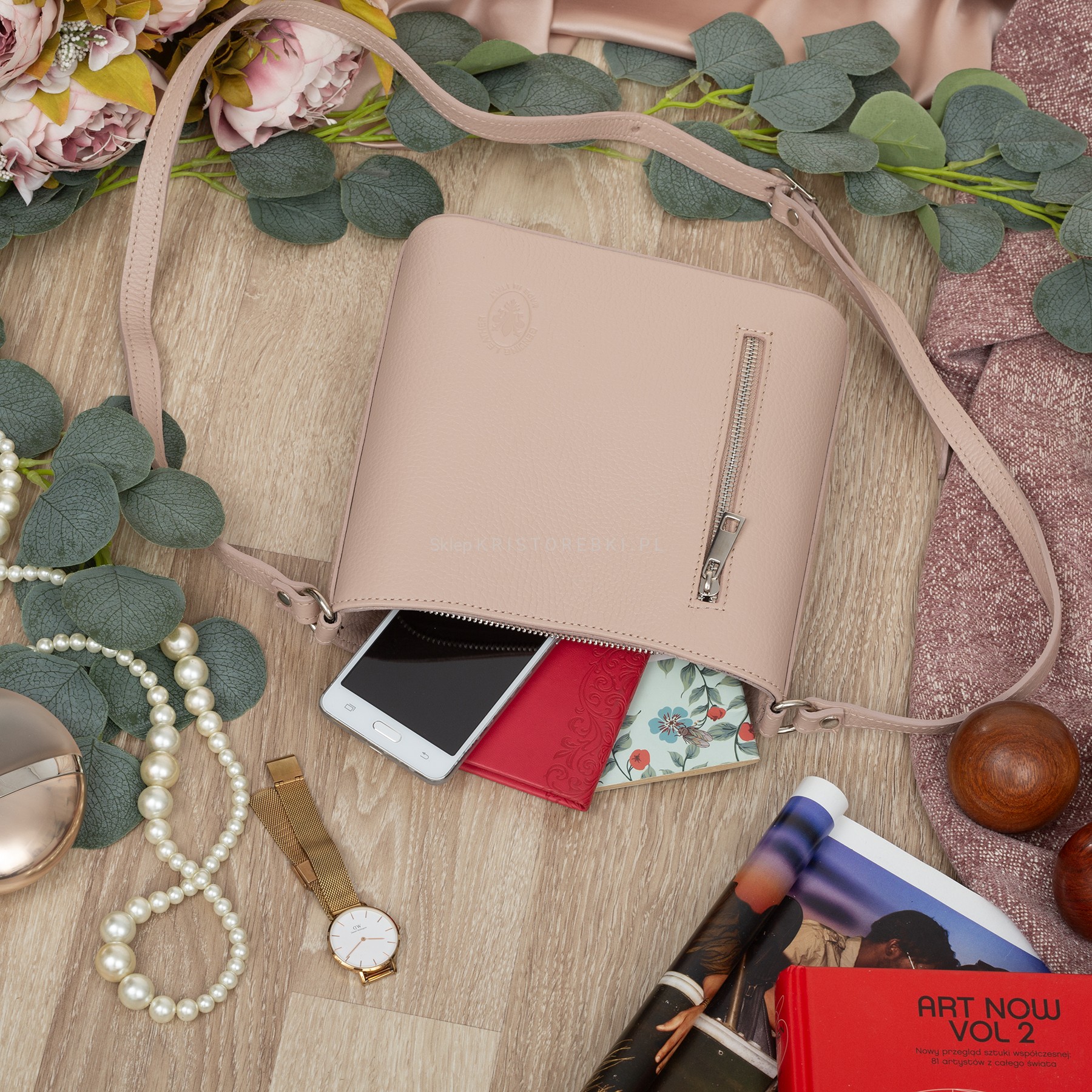 VERA PELLE torebka damska skórzana listonoszka z paskiem na ramię V723 jasna różowa